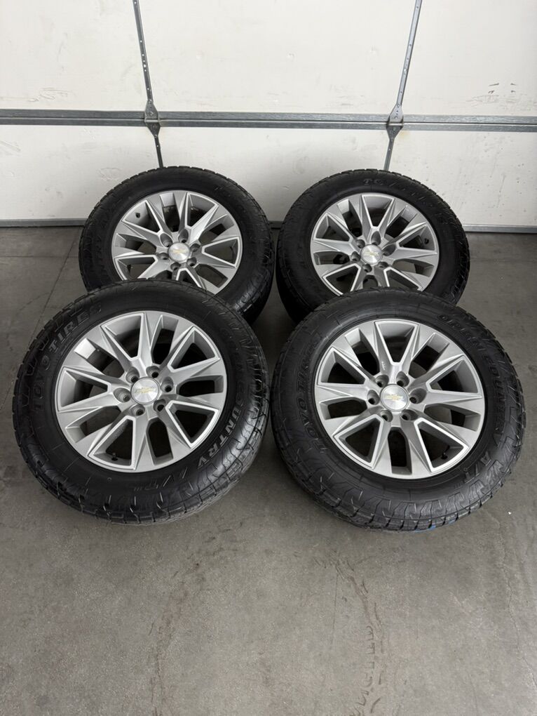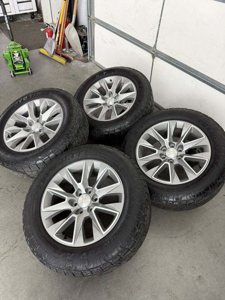 ZelleWhole setup is in great shape! 20in OEM Chevy 1500 high country wheels 275/60/20 Toyo at3 all terrain tires