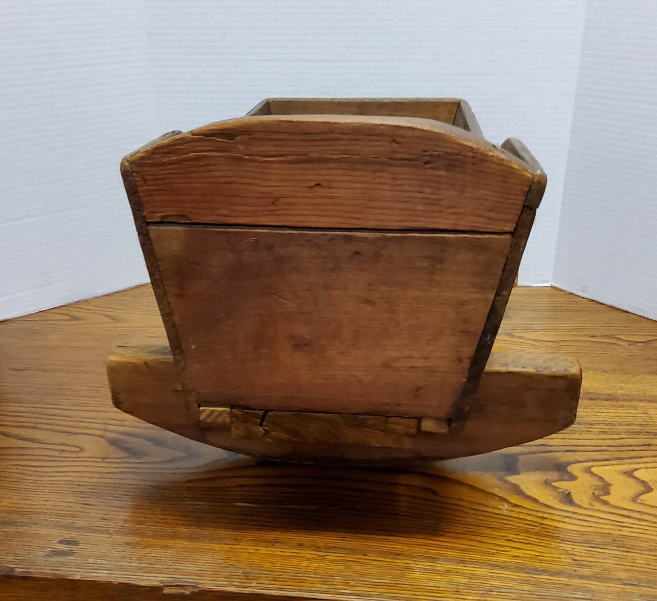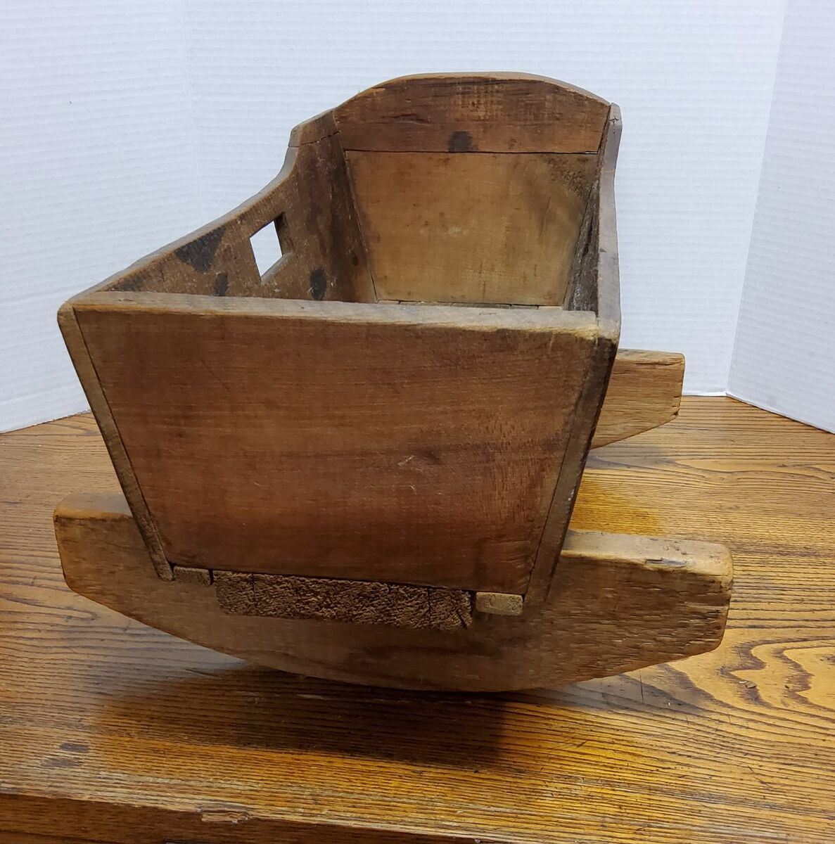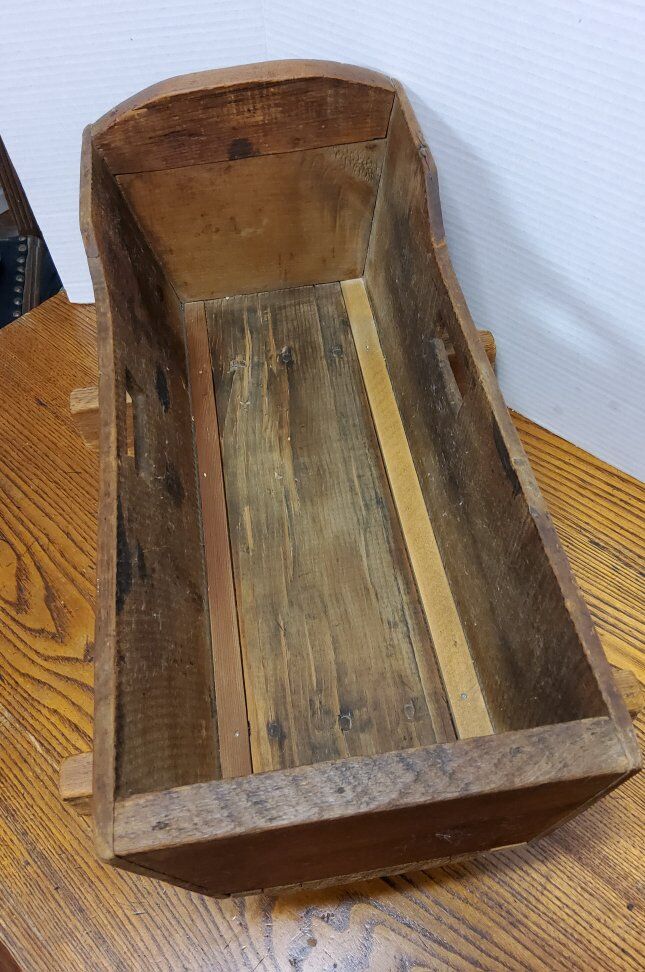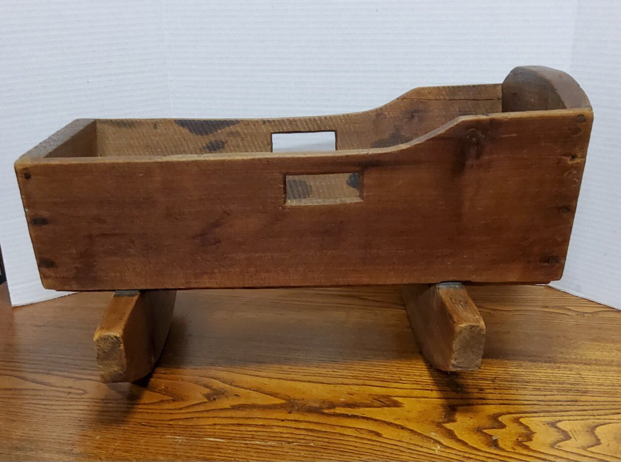 VenmoThis handmade oak doll cradle, dating back to 1930, is a charming piece of vintage furniture perfect for a baby doll. Made in the United States, this primitive and original item is crafted from wood with a brown color. Measuring 19 inches in length, 11 inches in height, and 14 inches in width, this doll cradle is compatible with 16-inch baby dolls. Its unique craftsmanship and vintage appeal make it a delightful addition to any collection of antique furniture. See pictures as part of description