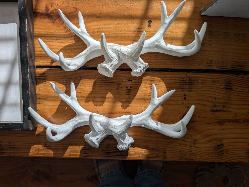 Venmoroom decor, faux antlers, bear, fox moose theme. teepee shelfs. mostly hobby lobby items some still with pricetags, $10-$20 a piece! decorate an entire room affordably!