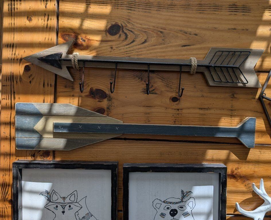 Venmoroom decor, faux antlers, fox, moose theme. teepee shelfs. mostly hobby lobby items some still with pricetags, $10-$20 a piece! decorate an entire room affordably!