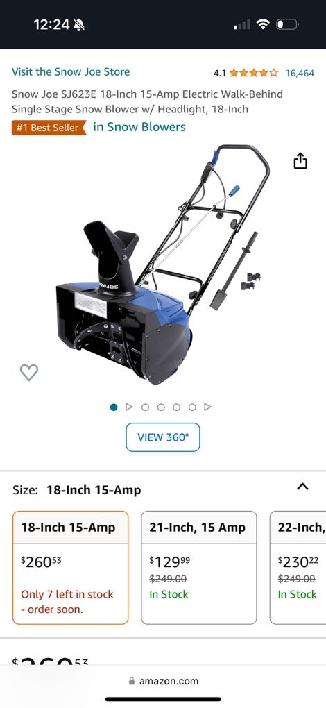 ApplePaySnow Joe SJ623E 18-Inch 15-Amp Electric Walk-Behind Single Stage Snow Blower w/ Headlight, 18-Inch