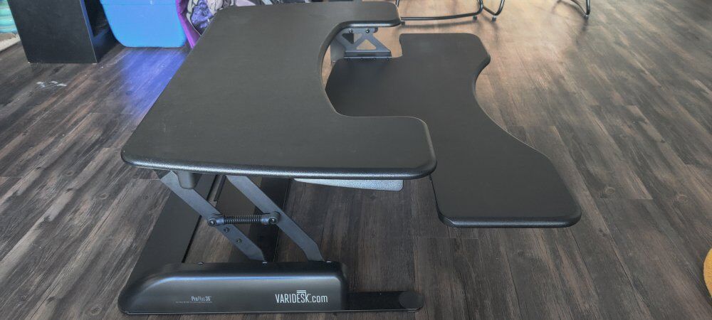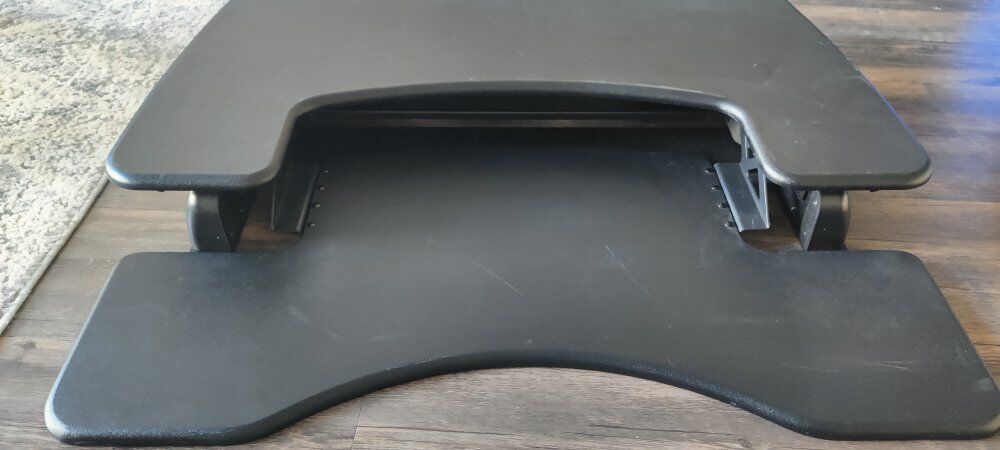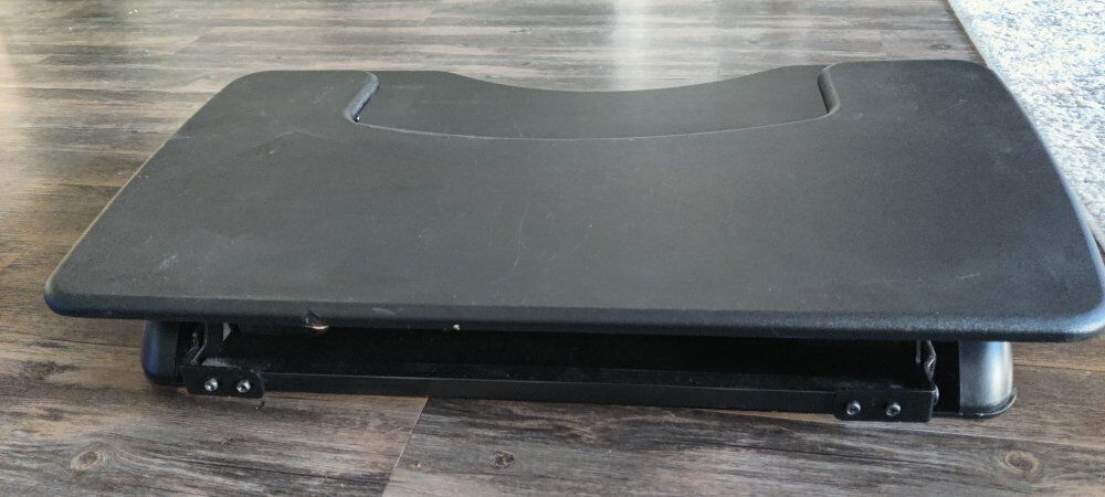 Converts a regular desk into a standing desk with 11 height settings. Great for offices and stable at all heights. Easy to use.