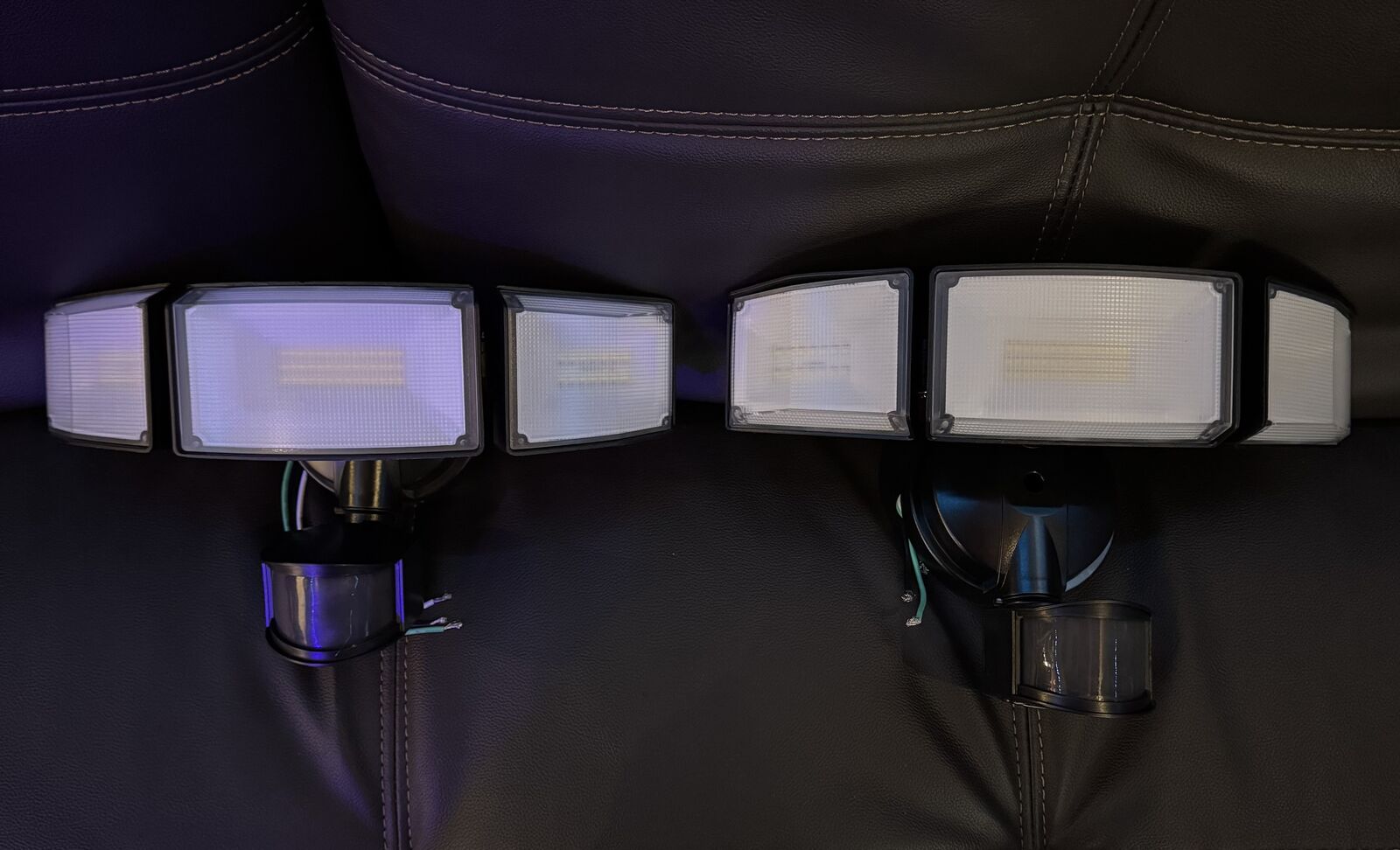 2 - new LUTEC 72W 7500 lumen LED Security, 5000K Daylight, IP65 Waterproof, Dusk to Dawn, 3-Head motion sensor outdoor flood lights