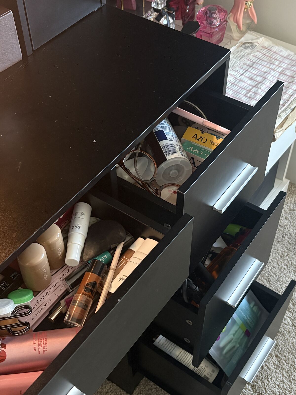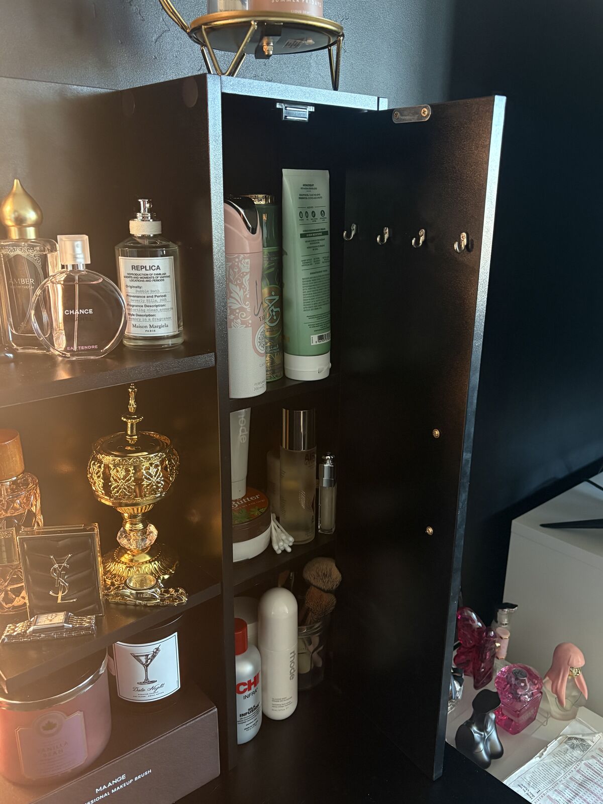 ApplePayblack vanit!! in perfect condition, has three different light colors and lots of storage room! available for pickup after december 29th! sent messages!