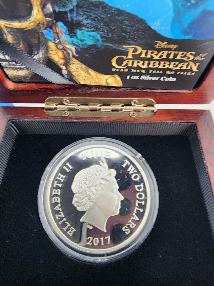2017 DISNEY PIRATES OF THE CARIBBEAN - JACK SPARROW - 1OZ SILVER COIN, DISPLAY CASE AND COA.