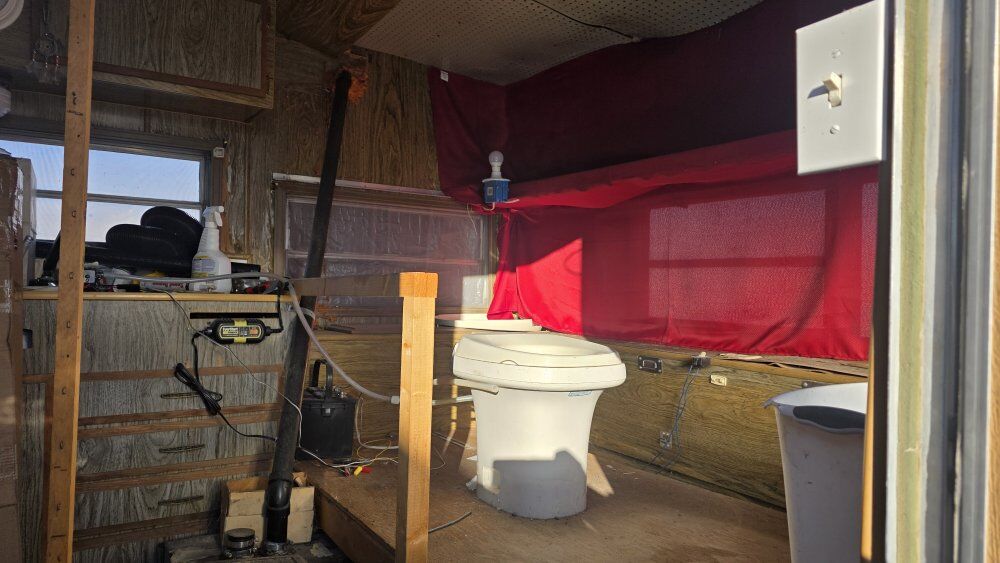 VenmoThis is a 1971. Prawler camp trailer, I've converted to a Porter potty only has a water tank sewer tank inside for cold weather. If you are building a home, and need a temporary bathroom. This is a good, and cheap way a family of 4 will fill black tank up around every 3 1/2 months before you need to emptying it Instead of paying a monthly blue hut, you can use this see other ad