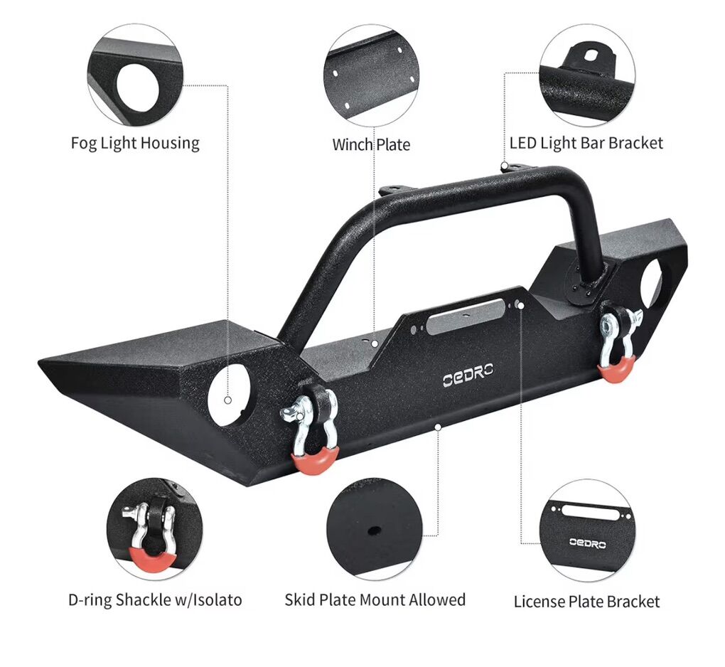 VenmoOEDRO Front Bumper Combo Compatible for 07-18 Jeep Wrangler JK & Unlimited with Winch Plate Mounting & 2 D-Rings, Upgraded Textured Black Rock Crawler Off Road