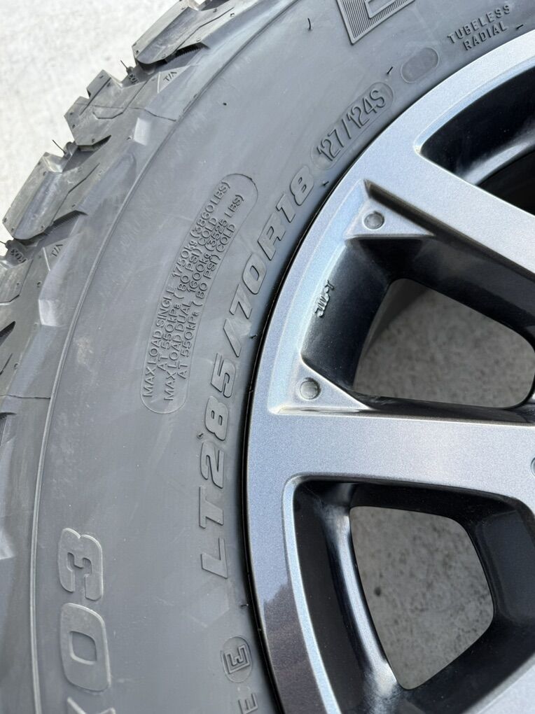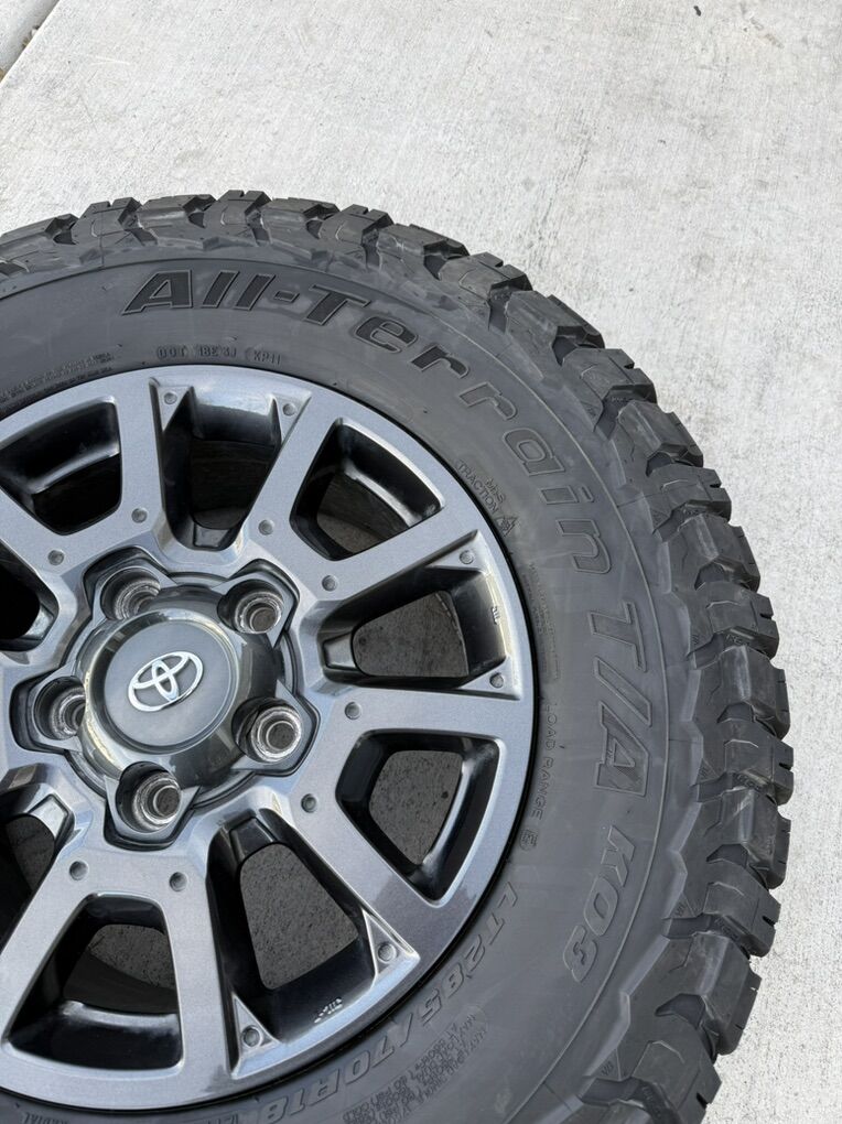ZelleSet of 4-Toyota Tundra Sequoia Land Cruiser Rims and Tires 285/70R18 BFgoodrich Ko3 Load E Almost new in excellent condition asking $2400 obo Tires are new Rims are in excellent condition I can sell the rims or tires separately Bolt pattern 5-150 Text anytime 385-402-2292