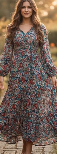 Imagine stepping out, feeling the soft breeze, and knowing you look absolutely captivating. Our newest long floral maxi dress is designed to do just that. Crafted from a wonderfully light fabric, it billows gracefully with every movement, creating an ethereal aura around you.