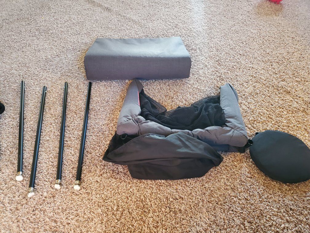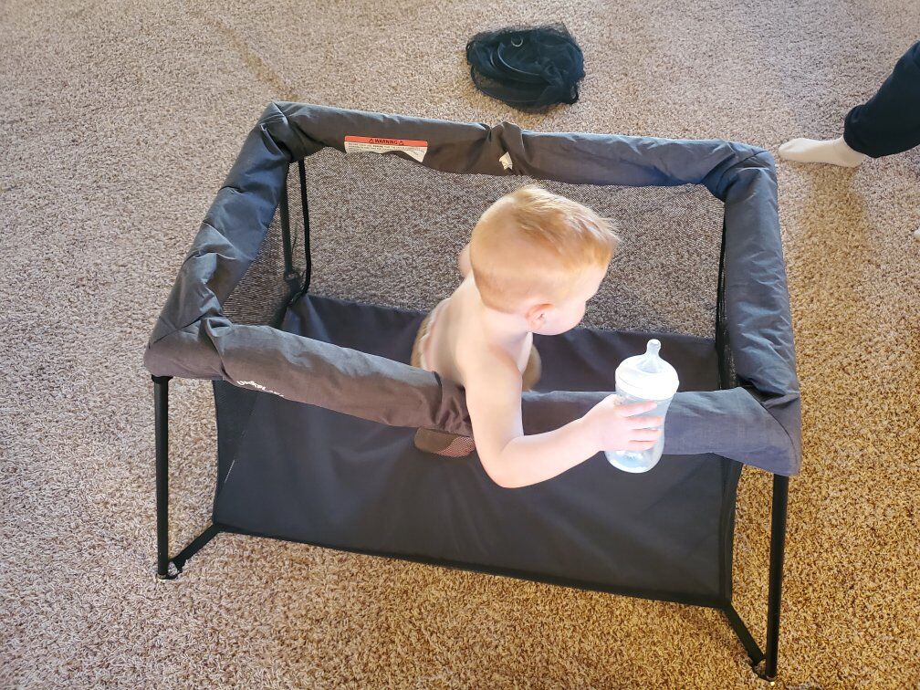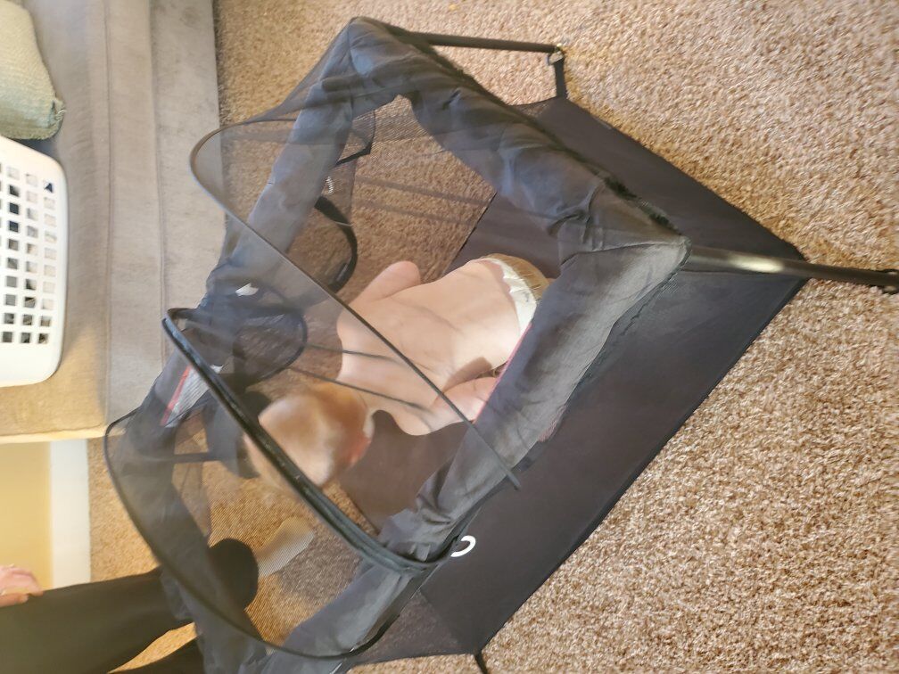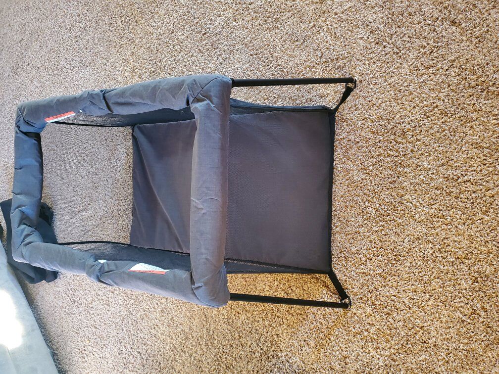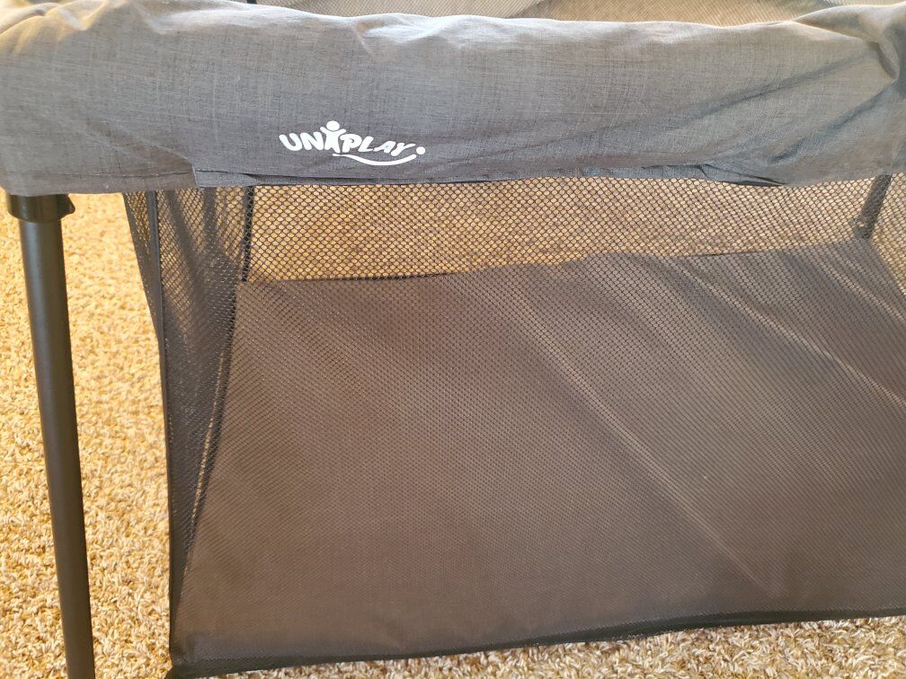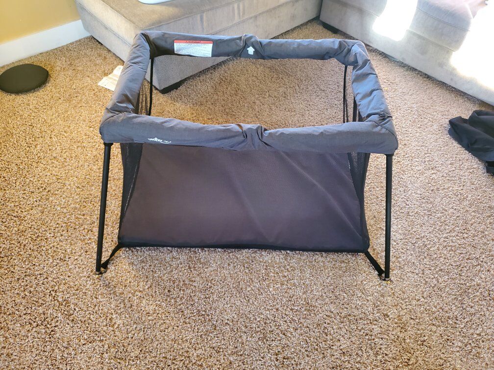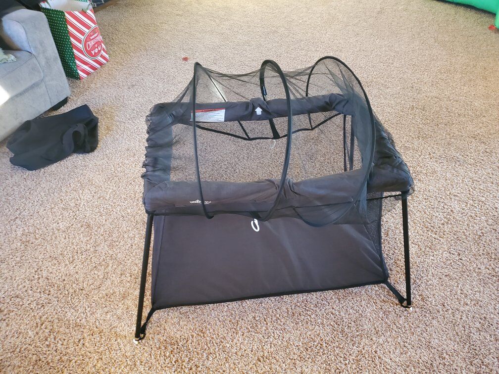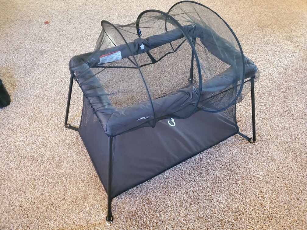 Uniplay brand pack and play/portable crib, works great our kiddo doesn't fit any more. Comes with a bonus "cover" thing that is mesh and unzips in the middle. Packs up into a nice case.