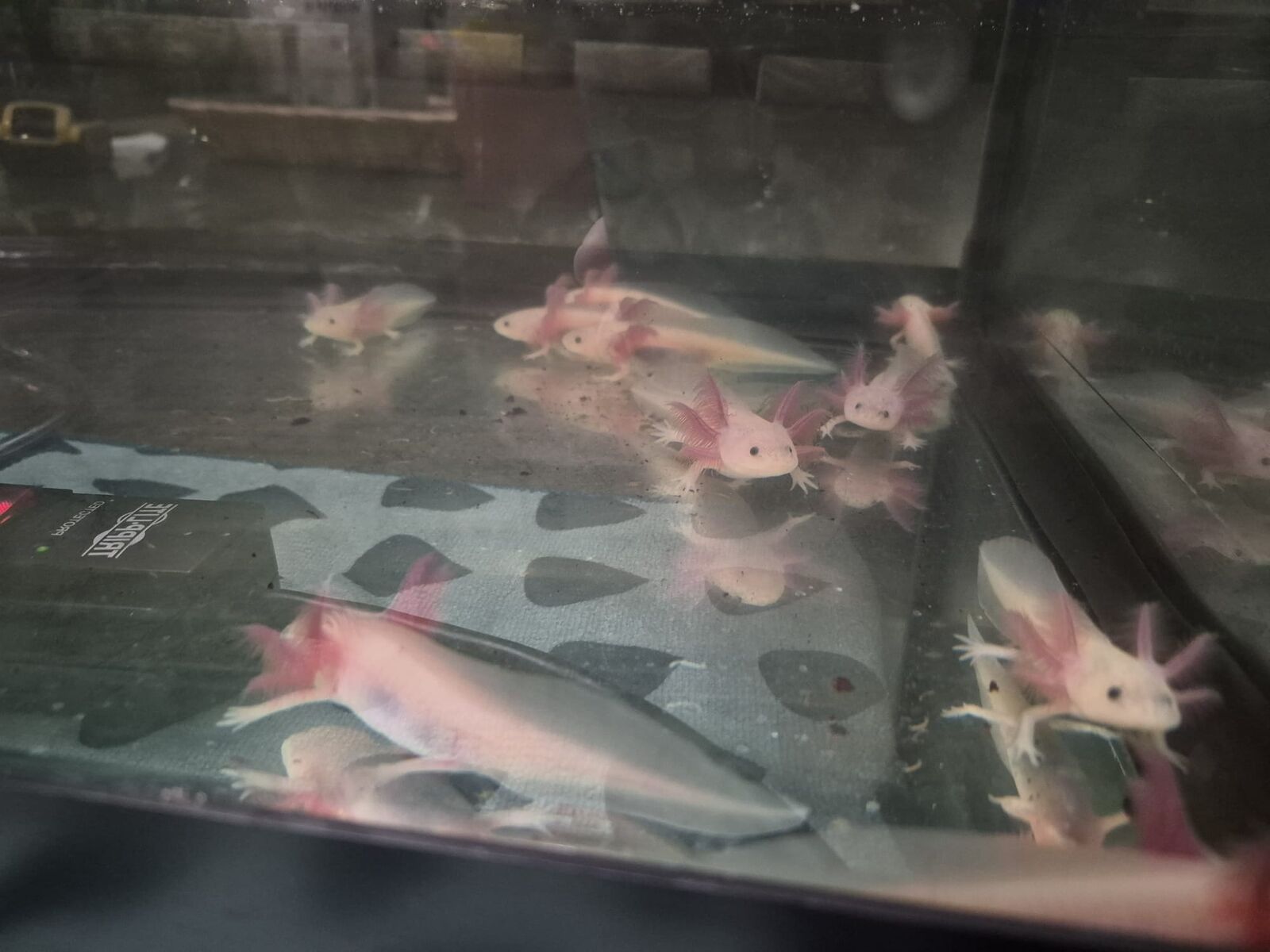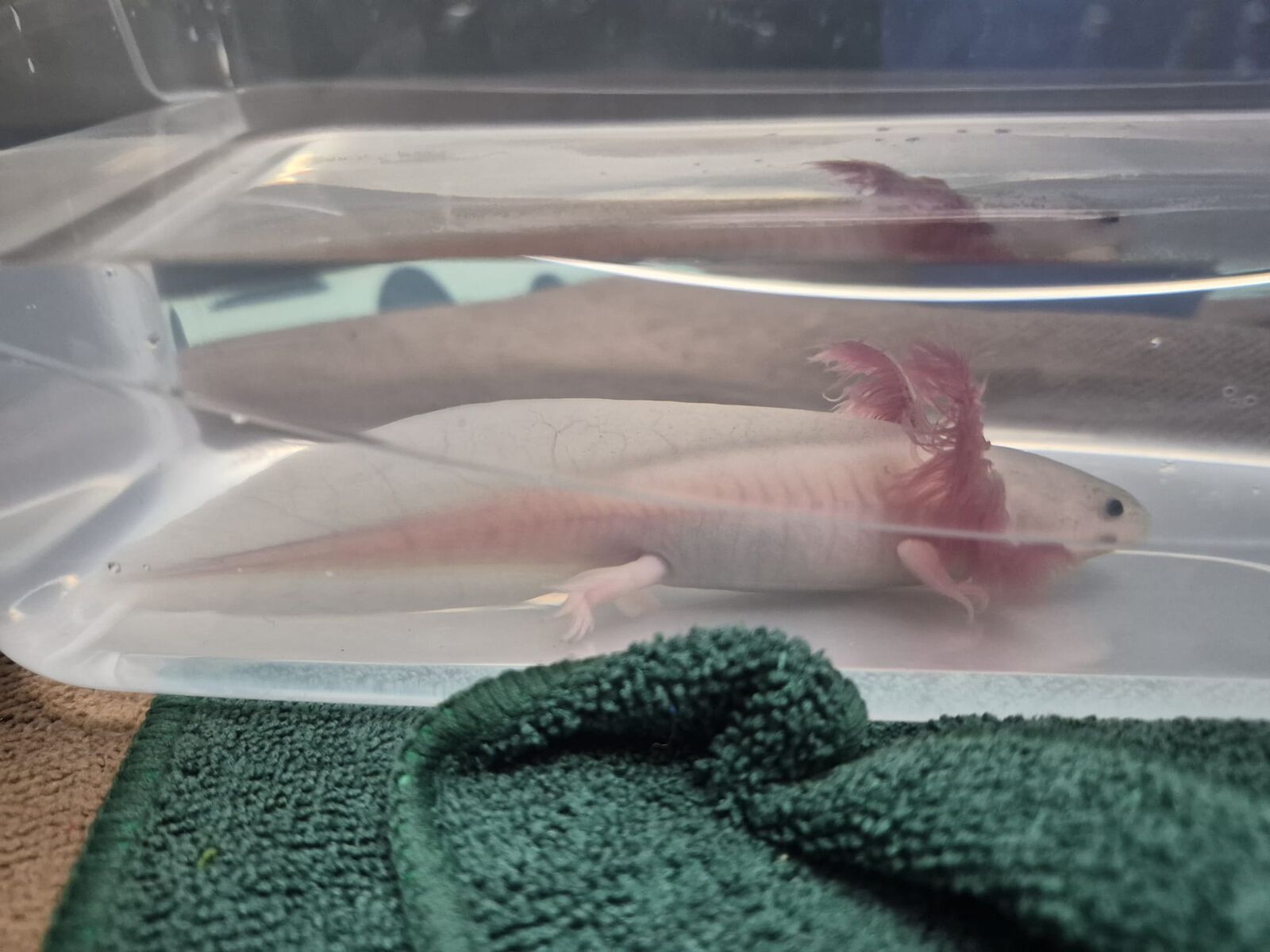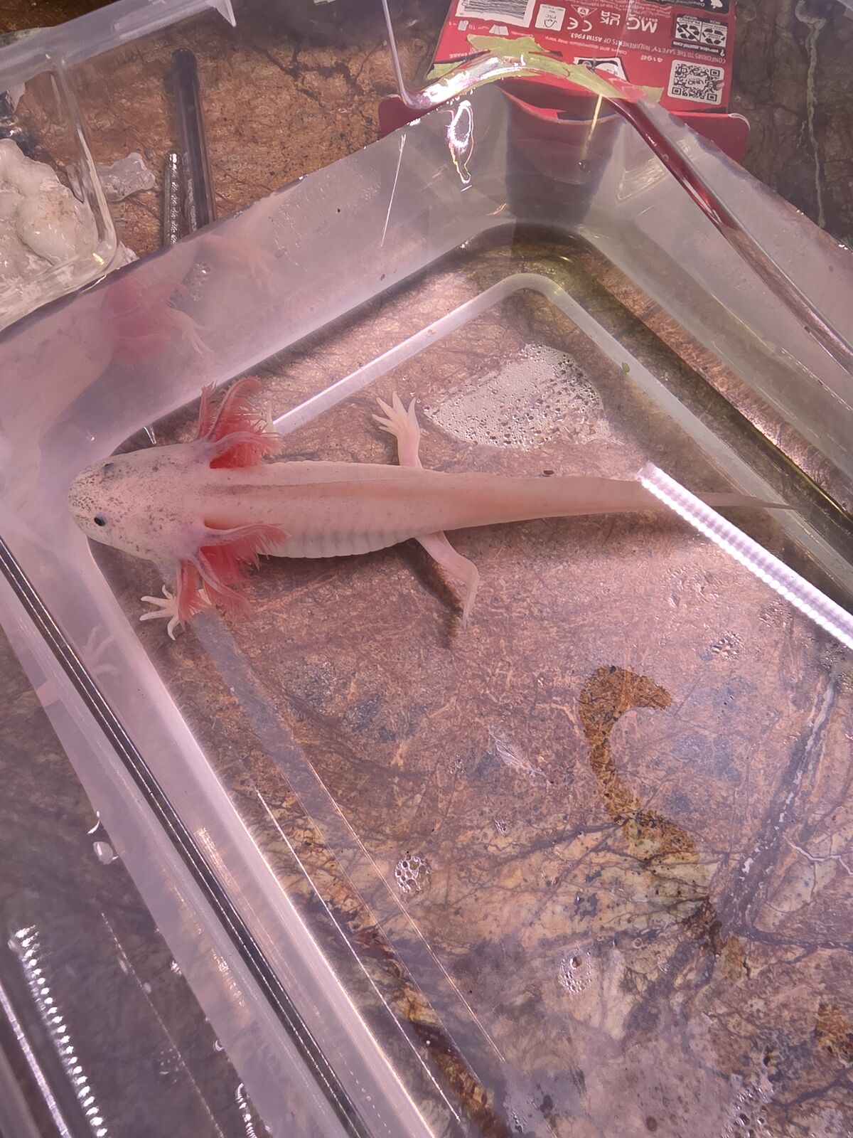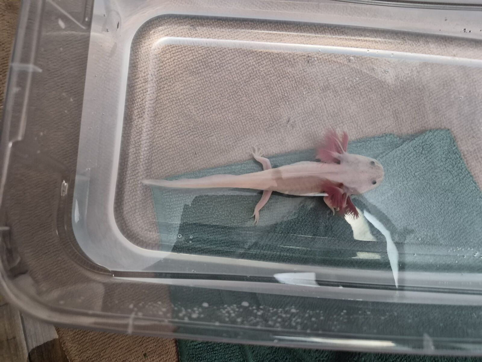 3 month old beautiful leucistic axolotl babies. In need of a forever home.