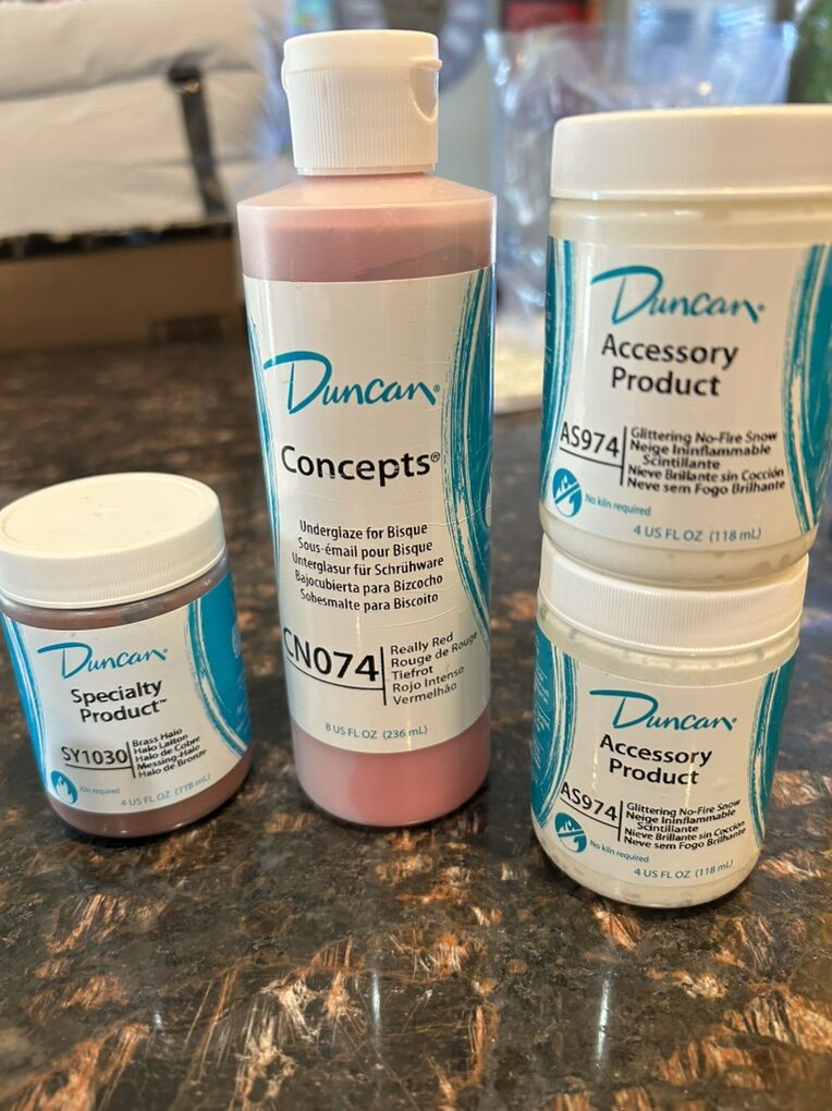 VenmoCeramic molds , to flatten bottles with the design scene in the pictures, glaze and paint for bisque and a gallon of glaze with some bisque ready paintable pieces, Halloween and Christmas