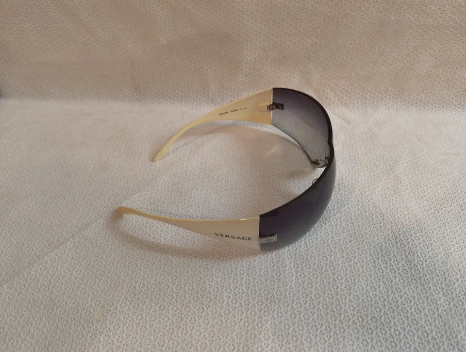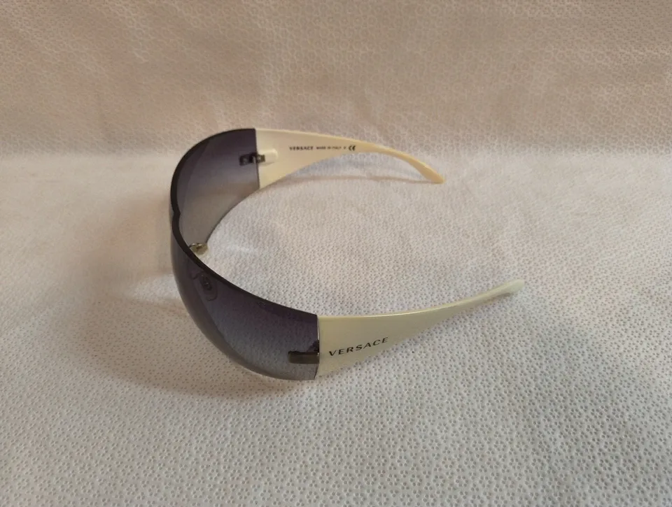 The Versace MOD.2054 1000/8G Silver/White Gradient Sunglasses are a stylish and high-quality accessory for both men and women. With their shield-style frame and gradient lenses, these sunglasses exude a rock-inspired vibe that is perfect for those looking to make a bold fashion statement. Made with durable plastic frames and glass lenses, these Versace sunglasses offer both style and function for any casual or chic outfit. Showcasing the iconic brand's design and attention to detail, these sunglasses are a fashionable and must-have accessory for anyone wanting to elevate their look.