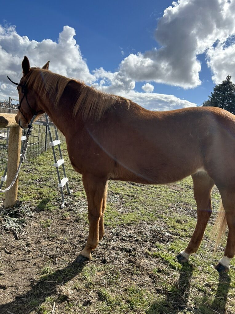 VenmoPenny is 21 and a sorrel mare. She has nice ground matters. She is great when riding and very smooth to ride. She listens when you tell her to do stuff. She needs a tune up but would make a great kids horse or lesson horse. She doesn’t bite, kick, or rear. If you are on her face too much then she might buck once or twice She was used for trails before I got her but I used her for speed events even though she isn’t too fast. She does tend to not like having her back feet done but is getting more used to it. She is patterned on barrels and is a fast learner. I hate to see her go but I need a faster, younger horse for barrel racing.