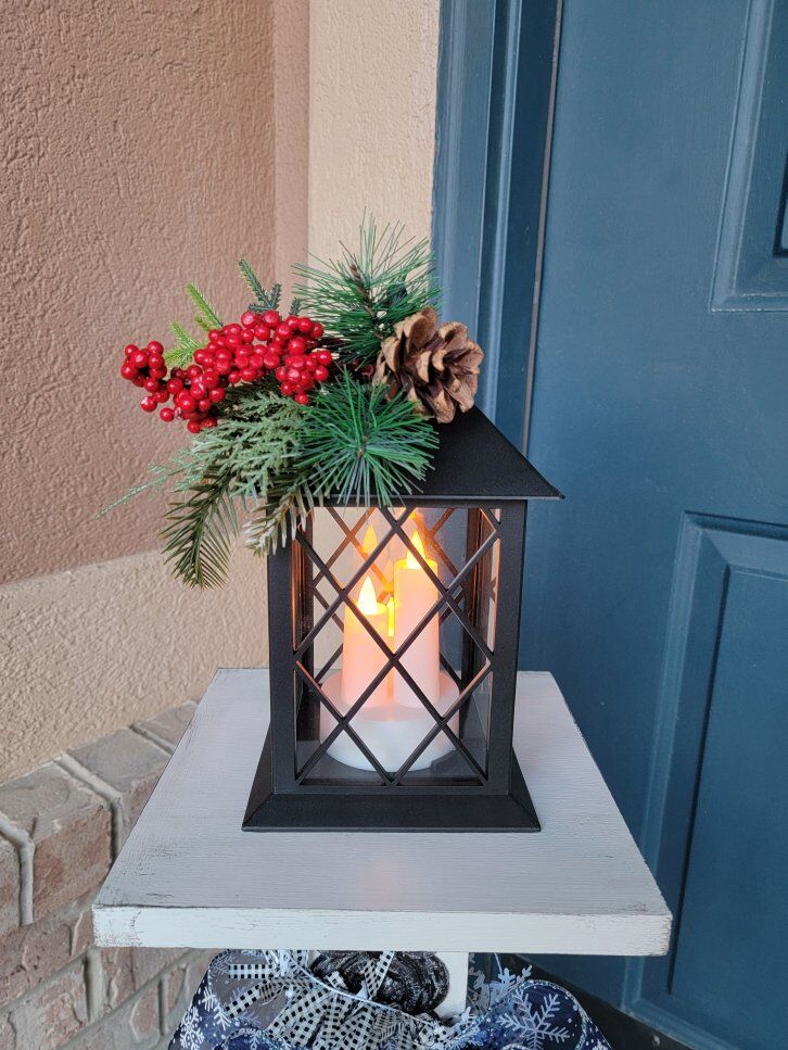 What's included: • Solid wood post construction with exterior black/white painted finish • Cast iron decorative hook (Vintage Style) • Holiday/Seasonal Sign or Wreath • Lighted Lantern Topper/Fixture- Batteries Included • Decorative bows and garland (Bows may be different than pictured) • Ready to display right now