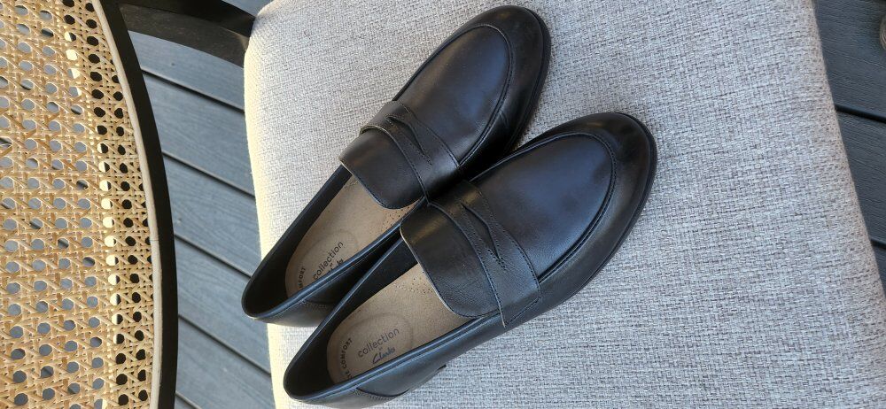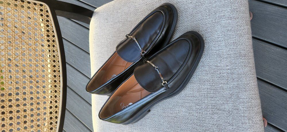 Franco Sarto leather loafer - $40 Vionic black slipon - $20 Born Naya blue nubuck leather driving loafer - $60 Sam Edelman two-tone leather zipper boot - $40 Clark's black leather loafer - $30 Adidas gray suede sneaker - $25 Lucky taupe/tan zipper boot - $15 Steven NY Haydn cognac leather sandal - $35 Volatile rhinestone platform sandal - $20 L.L.Bean black leather ballet flat - $8