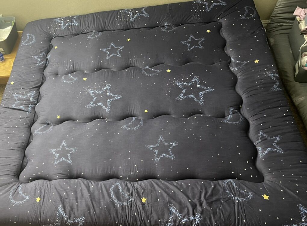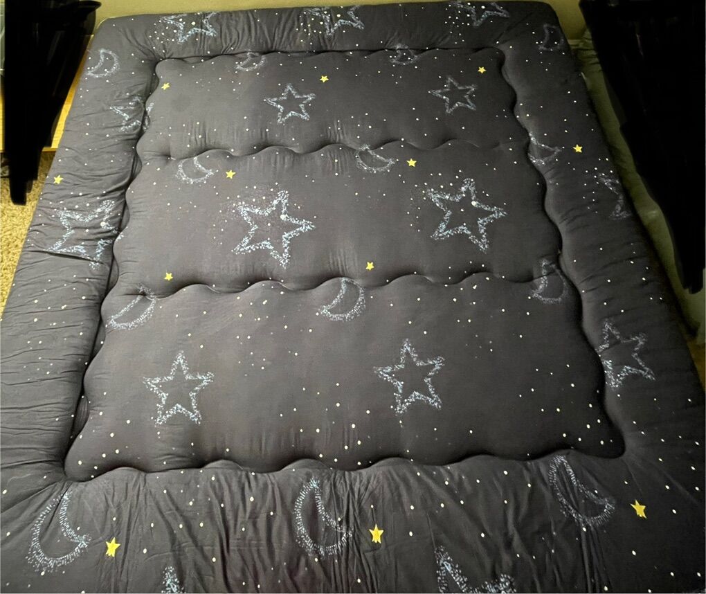 PATTERN: Moon and Star |Cover Material: Microfiber| Filling Material: Polyester + High-density base support foam | King Size: 78 wide x 80 long | Weight: 17.4 lbs