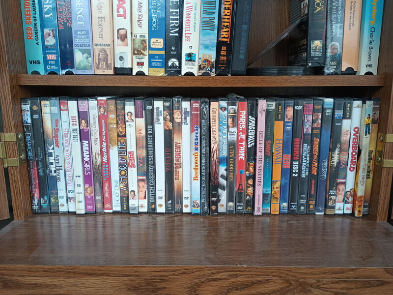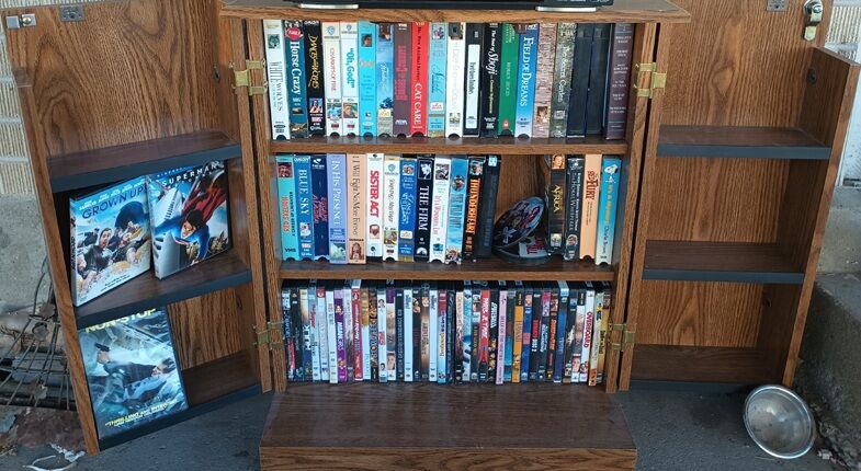 VCR and DVD movies with cabinet for tapes or CDs all for 35.00.