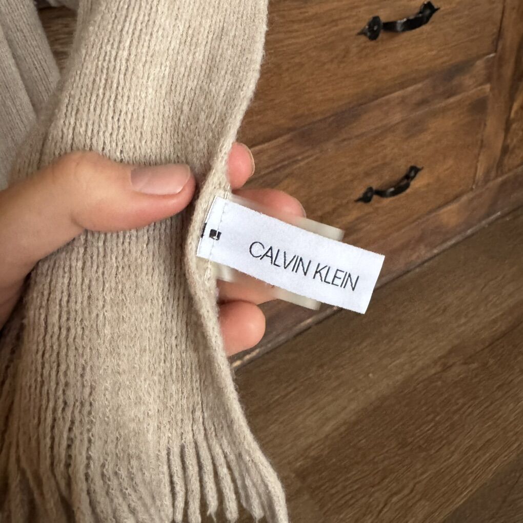 Calvin Klein Beige Almond Acrylic Woven Scarf Women One Size