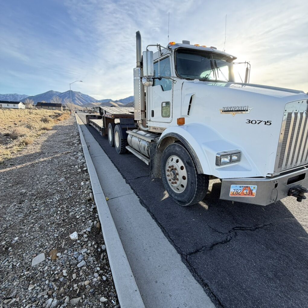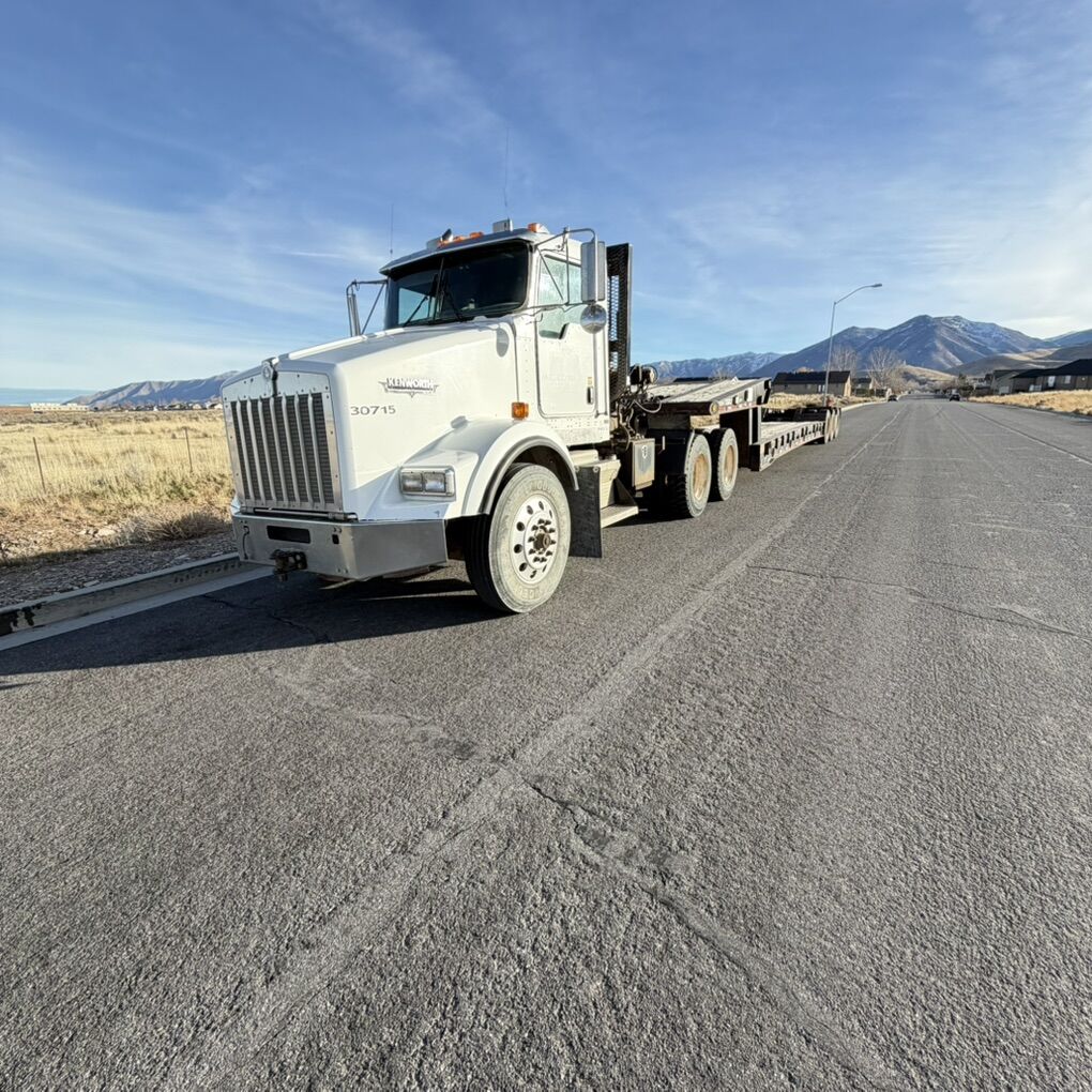Kenworth T 800 winch truck has 107,000 miles selling with Kaylyn 60 ton equipment trailer fold down neck three axle ready to go to work