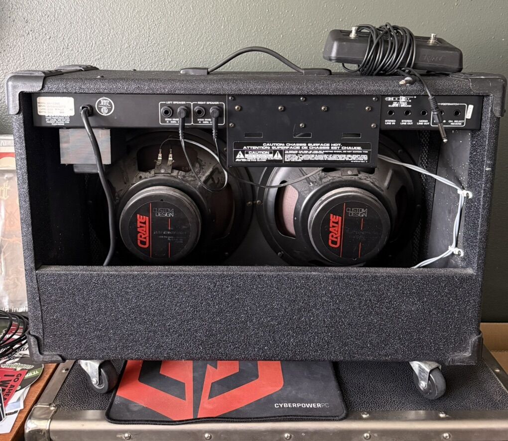Great sounding amp. Good clean channel with onboard Chorus and awesome lead channel. Used by a ton of great death metal bands in the 90’s. Includes footswitch.