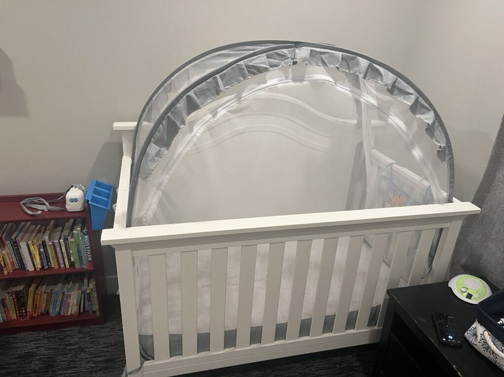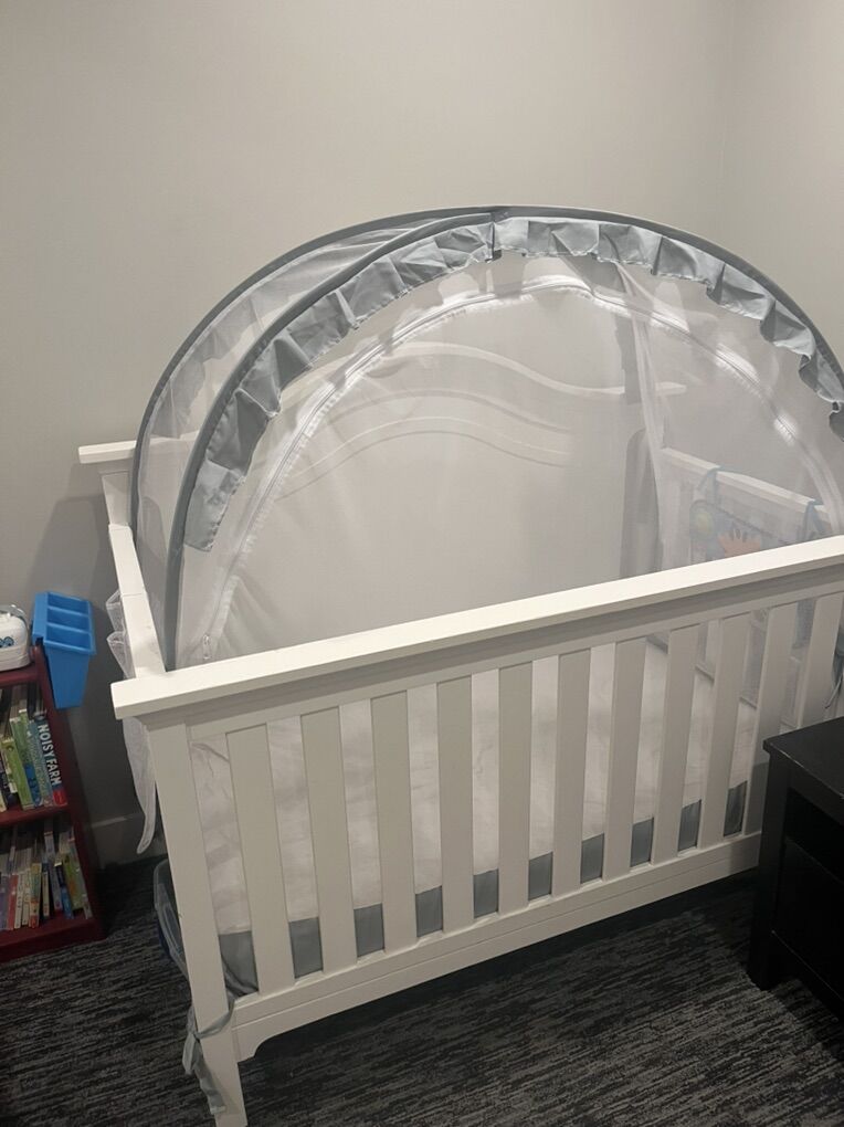 VenmoWhite crib, wood material. Used but in good condition. Has some chips on the wood but works perfectly.
