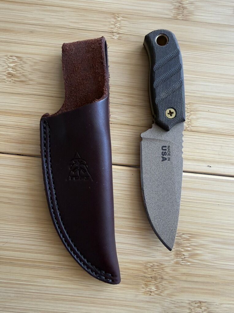 Tops 3.0 - 3” blade and leather sheath.