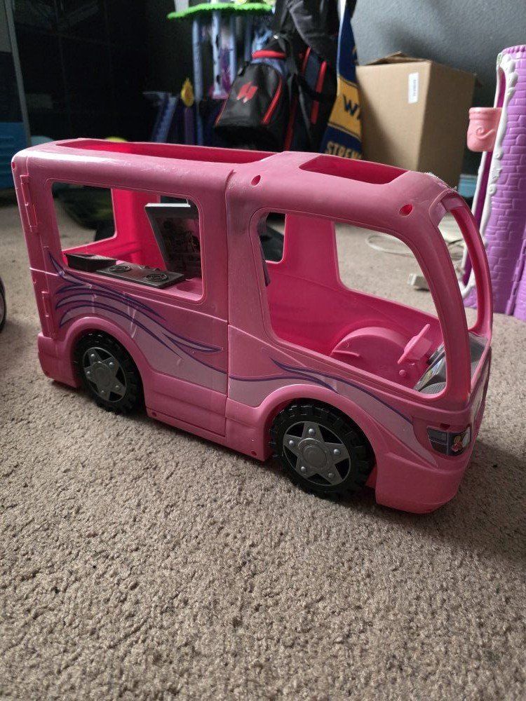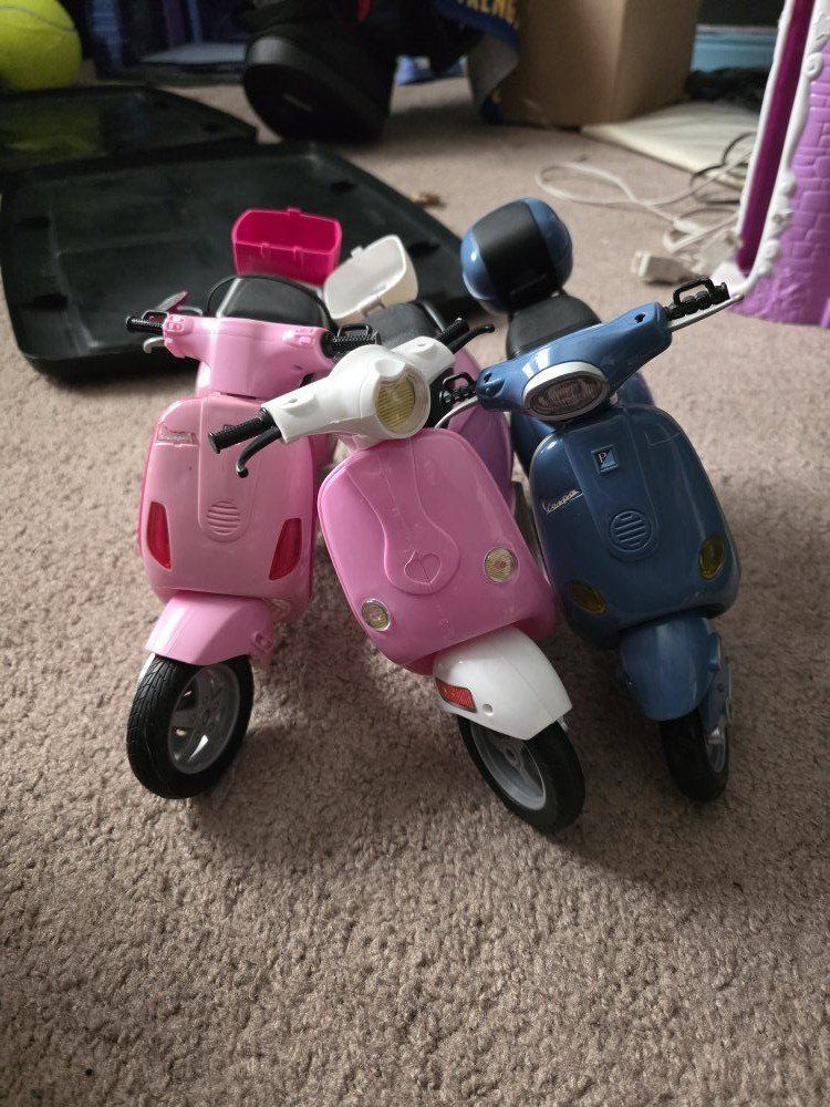PayPalComes with over 40 Barbies and Bratz dolls, furniture, car, 3 scooters, and motor home.