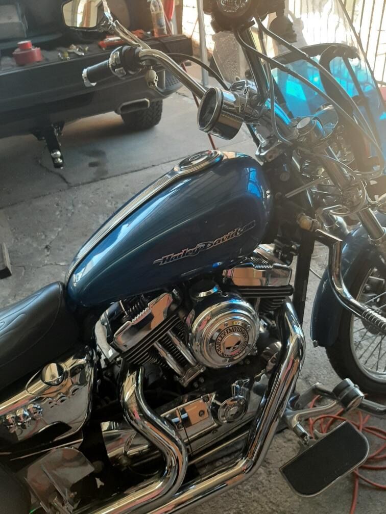 2005 Harley-Davidson 1200 Custom Sportster Motorcycle. In great condition. 16,800 miles Comes with all the fancy upgraded chrome done in chrome skulls. backrest, Rack and luggage bags, Passenger and Drivers foot boards Windshield, After market seat by drag specialties. Vance Hines pipes, Engine guard. Fancy mirrors. Beautiful Blue color. I Have motorcycle vehicle report and clear title. May need carburetor work since it has not been started for a long time Asking $3,600 801-631-3628 See Less