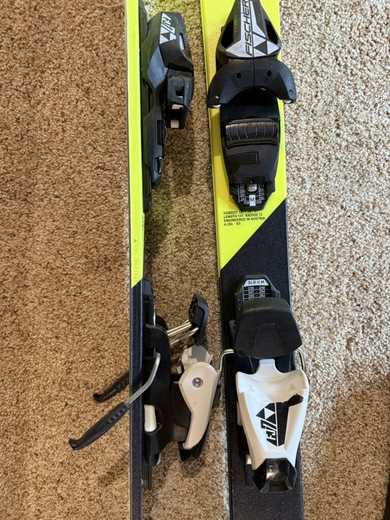 VenmoTwin tips. With bindings. 131 cm length Fischer STUNNER model Great shape with minimal wear!