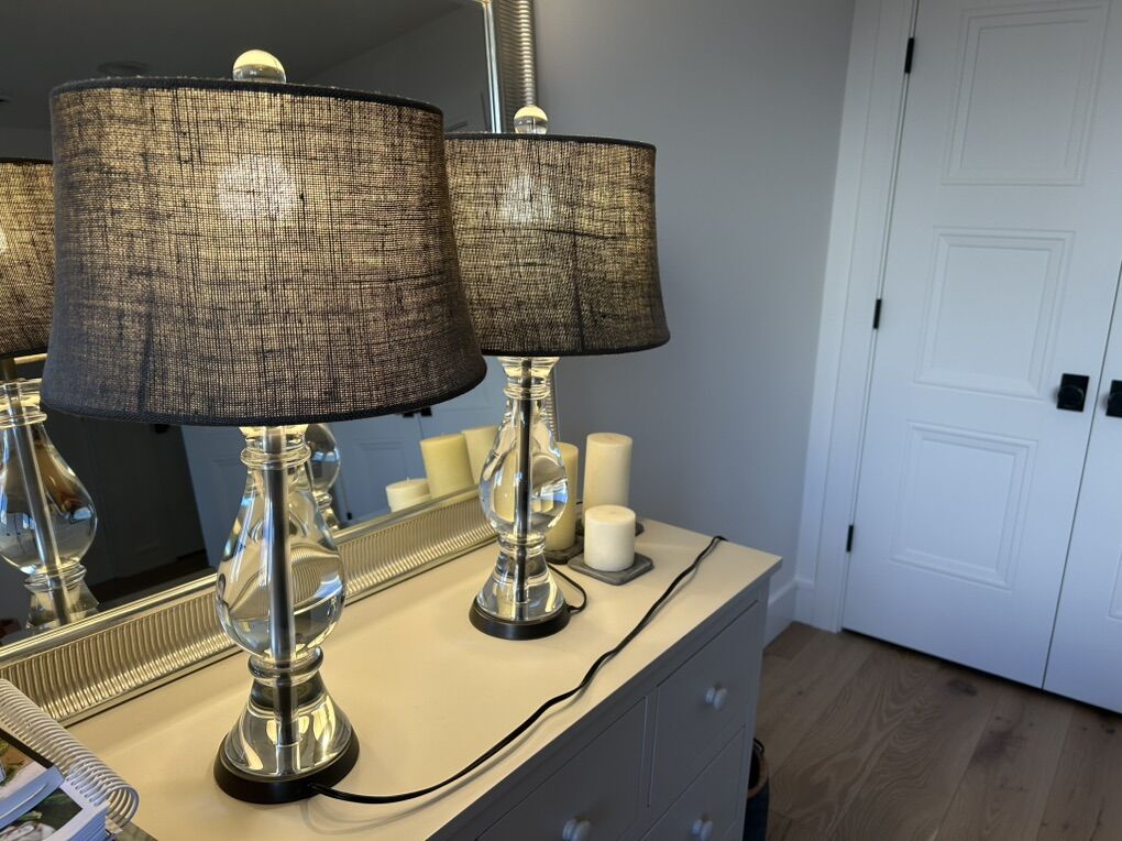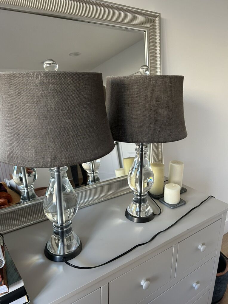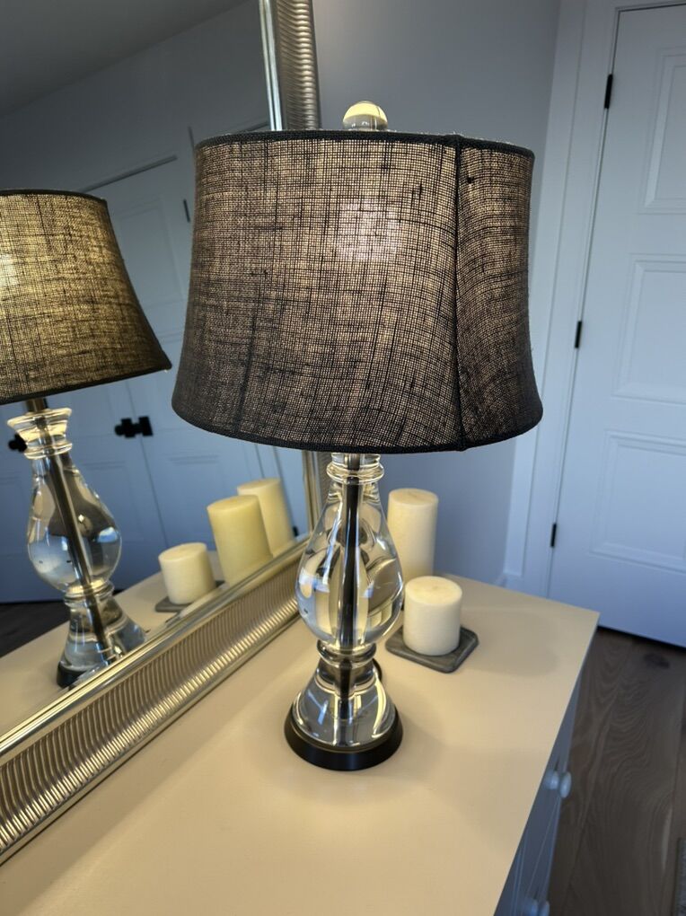 VenmoTwo pottery barn lamps for sale. Base is solid glass and lamp shade is dark gray. In great condition. Asking $80 each lamp