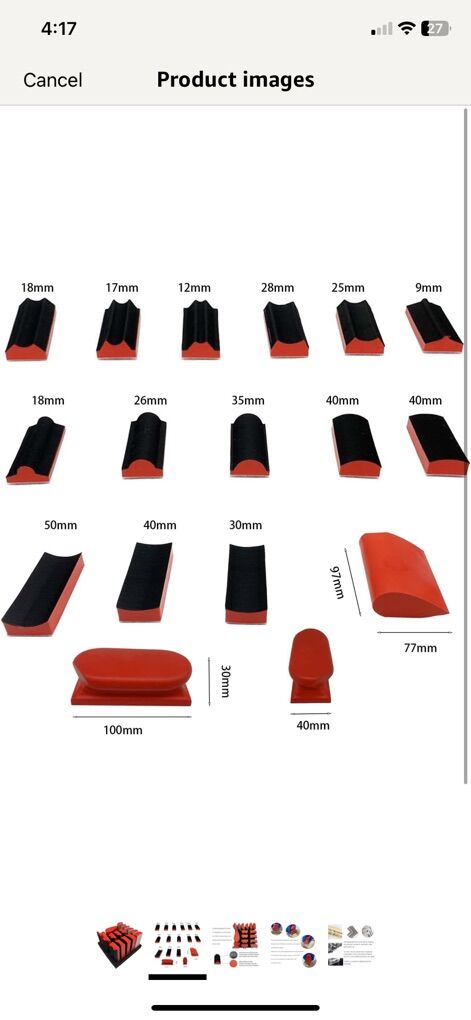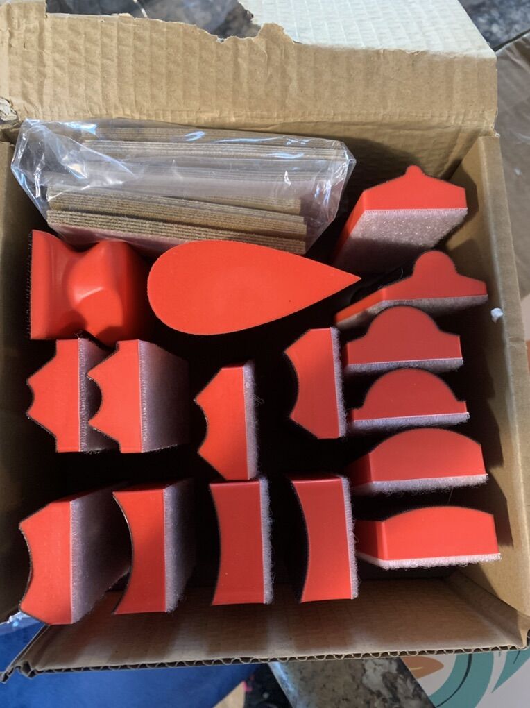 ZelleHand Sanding Block Set of 16,Interchangeable Assorted Contoured Profile Sanding Pad Kit,Hook and Loop Abrasive Sanding Chassis for Sand Wood Furniture, Auto Paint and Crafts,Red