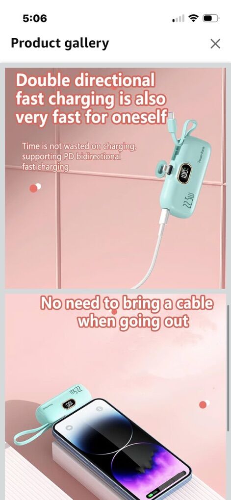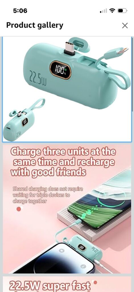 ZelleBrand new….4000mah Mini Portable Charger Power Bank for Phone, Compact Pocket-Sized Capsule Power Bank with Fast Charging & Built in Cable, Portable External Battery for Phones & Devices (Green)