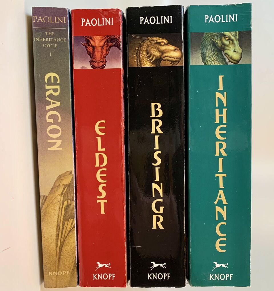 VenmoEragon, Eldest, Brisingr and Inheritance all softcover in very good condition (see pictures) by Christopher Paolini. Message me if interested in purchasing them.