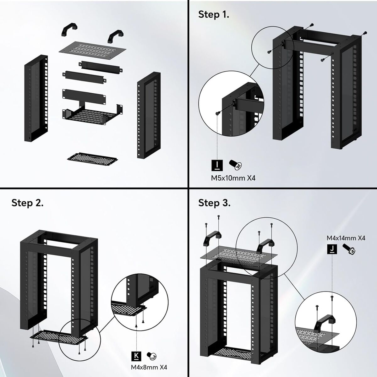 Robust and reliableThis 10-inch server rack is made of high-strength steel and high-quality acrylic side panels. Its sturdy structure can perfectly fix various equipment and prevent the mini rack from tilting or vibrating during long-term use, ensuring that the internal equipment is not damaged.