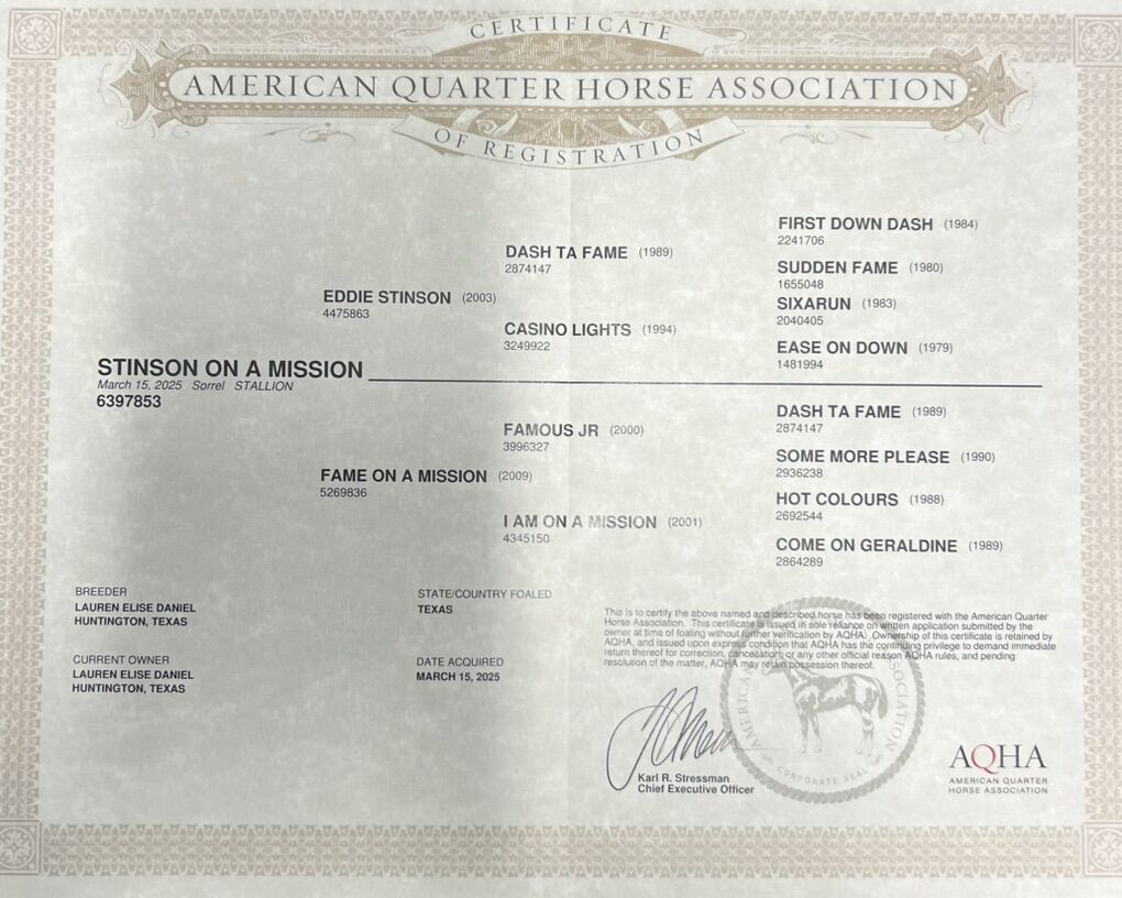STINSON ON A MISSION ️2025 Sorrel Colt ️Eddie Stinson x Fame on a Mission