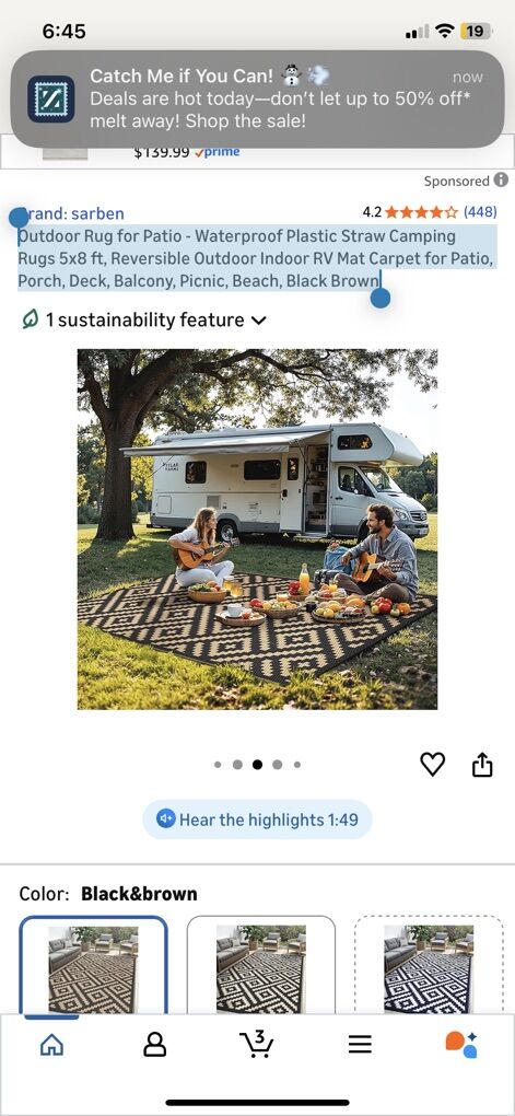 ZelleBrand new sealed! Outdoor Rug for Patio - Waterproof Plastic Straw Camping Rugs 5x8 ft, Reversible Outdoor Indoor RV Mat Carpet for Patio, Porch, Deck, Balcony, Picnic, Beach, Black Brown