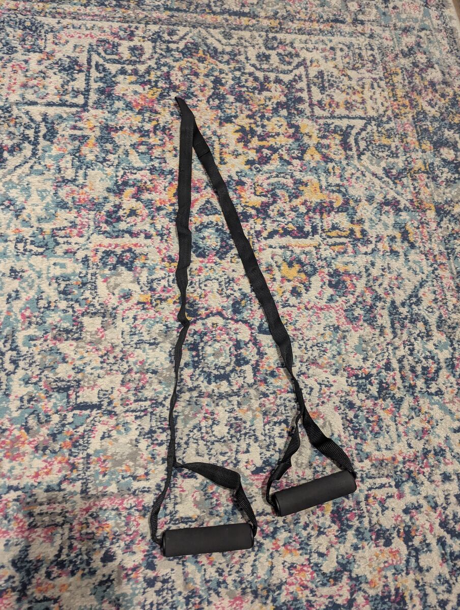 VenmoUpgraded to a wall-mounted pull up bar so this amazing set-up is needing a new home! There are also some straps that go along with it. Really awesome set-up for those wanting something a little more than a regular door frame pull up bar but not the commitment of a wall-mounted one.