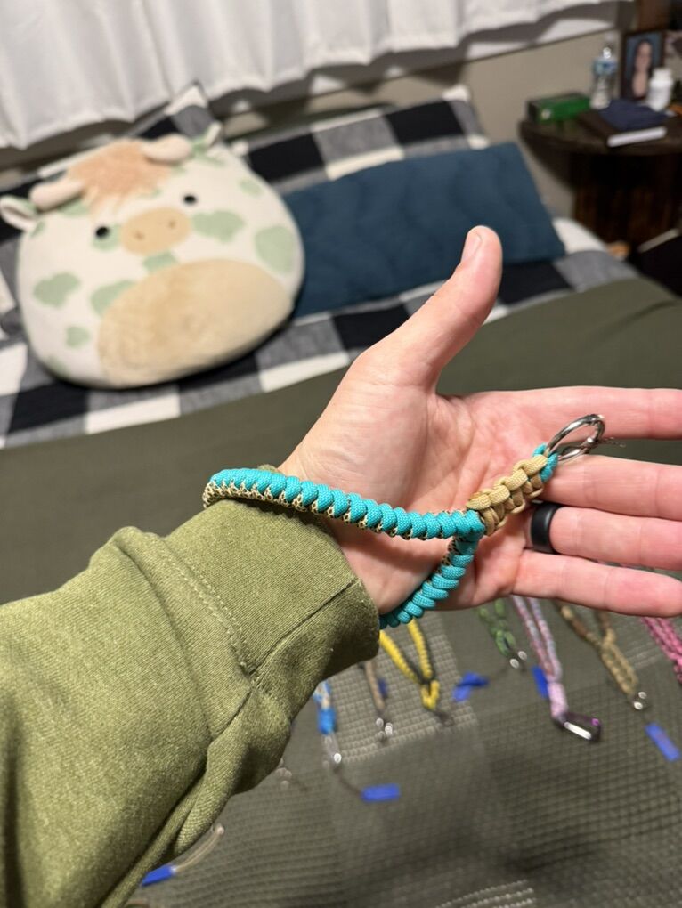 ZelleHandmade paracord wristlet and finger flips. Can make any style or size. Bigger wristlet are five dollars. Smaller wristlets are three dollars and your finger flips are two dollars. Don’t see a color or style you like let me know I can custom make you whatever you want no extra cost.