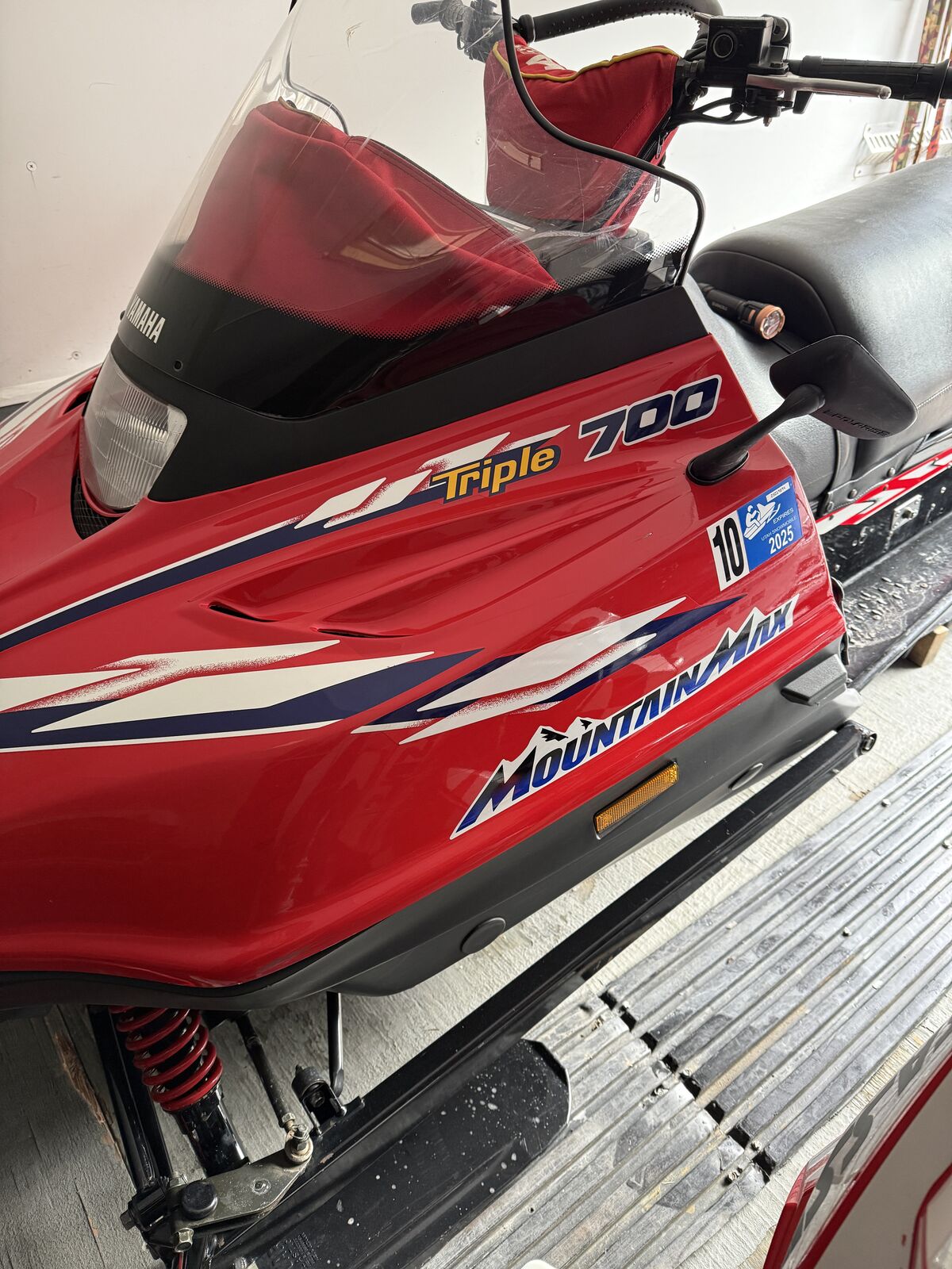 ApplePay1997 Yamaha Mountain Max 700. Extras and upgrades. Windshield and handle bar bags. Seat has been redone with 3 more padding. Tripple exhaust added. 2 1/2 lugs and longer track added. 3494 miles on it as of today 12/29/2025. This has been stored inside except when was being road. I have some exrta spark plugs and a new extra belt. I also have some extra yamaha 2 cyl oil. I am the original owner. It has only been road 2 or 3 times in the last 5 years. It runs great to 7000 rmp then little flat spot and great above that. Probably due for tuneup. This was a backup sled and worked great of new riders because it has an easy to push throttle. I will add more pictures if a interested buyer wants more details. Just let me know. If you are interested make an offer and we will see if we can work it out.