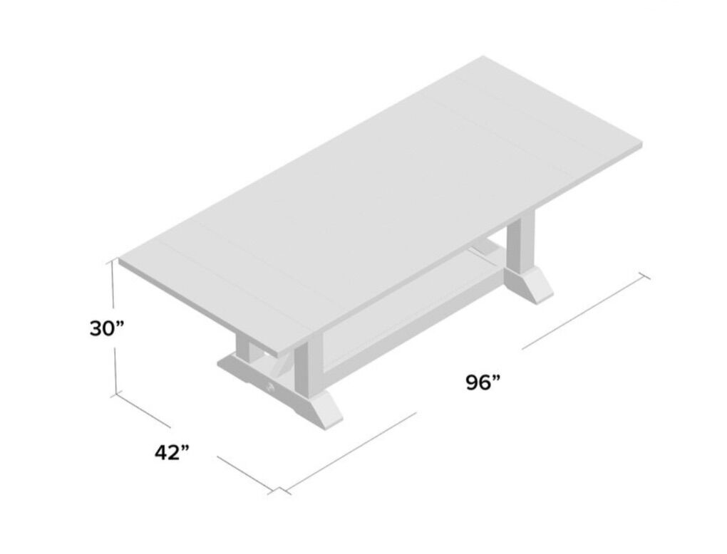 This is a very heavy and sturdy table. Dimensions in the picture (96” length is with the 2 extension leaves, 72” without them. I have had a glass top on the non-extended portion the whole time, and will include it with the sale.