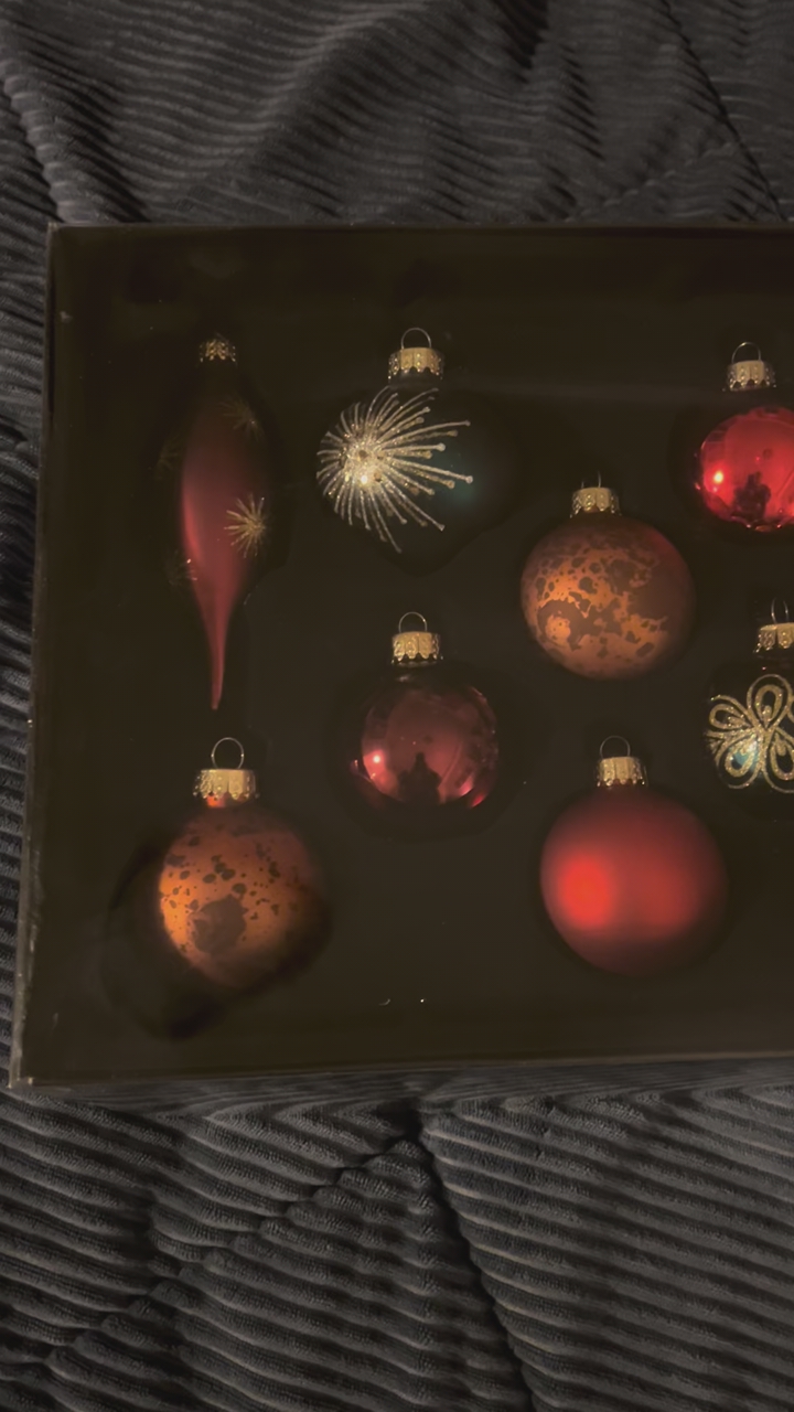 VenmoBrand new ornament set, never opened. I bought two and I only use one of them, they’re very pretty, jewel tones with gold glitter embellishments.