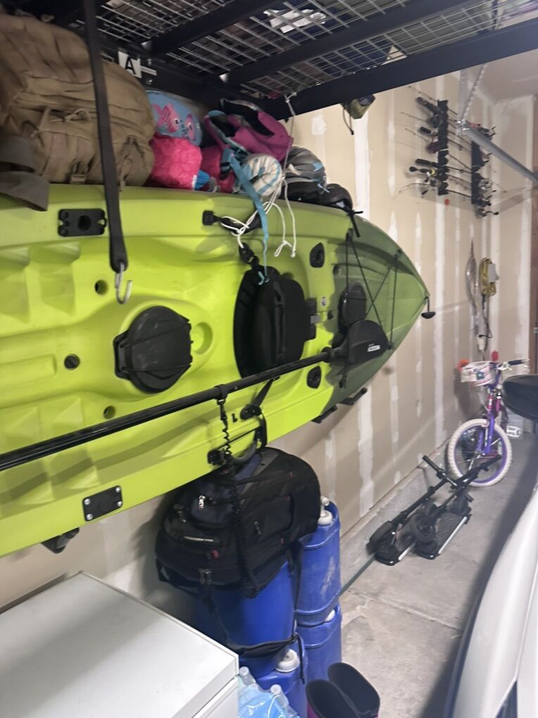 Used but in great shape. As you can see, it is more of a shelf for me than a kayak right now. I have two fishing pole holders that will go with it. Price is OBO but I’m not going to give it away. Save your time on the scams, I am not going to fall for it.