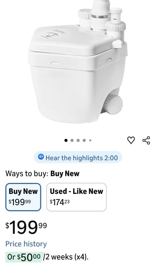 ZelleWe bought this pump from Amazon 3 months ago for a basement project, but our plumber said it is the wrong size. It is new in the box (unopened). We are not able to return it, because it's past the return date. We purchased it for $199. Asking $125 OBO