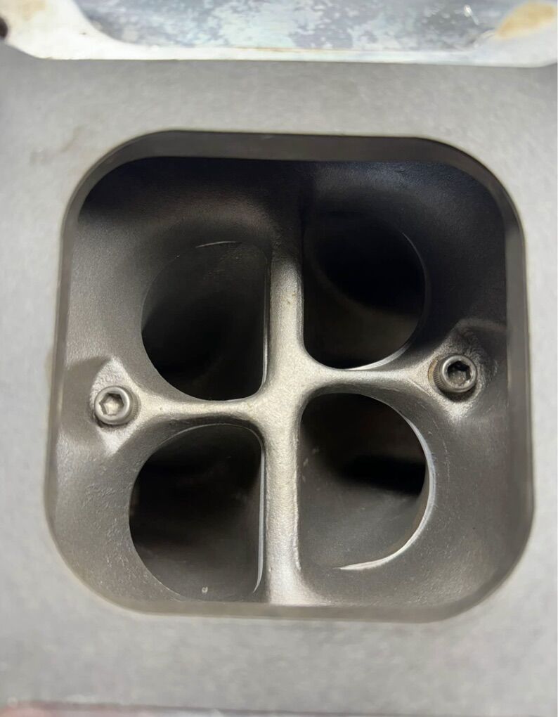 Polished Large oval port tunnel ram for a big block Chevy in awesome condition. No stripped threads or issues. Comes with carb studs, gaskets and two Holley 650s that were soaked in muriatic acid and soda blasted but need reassembled/rebuilt.