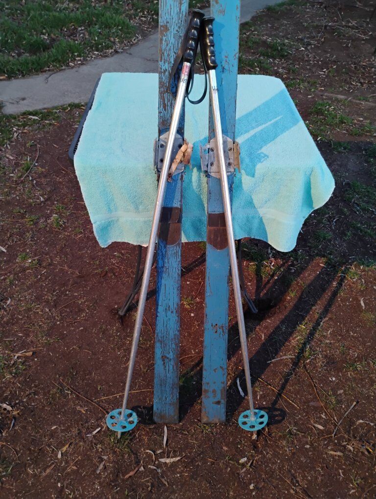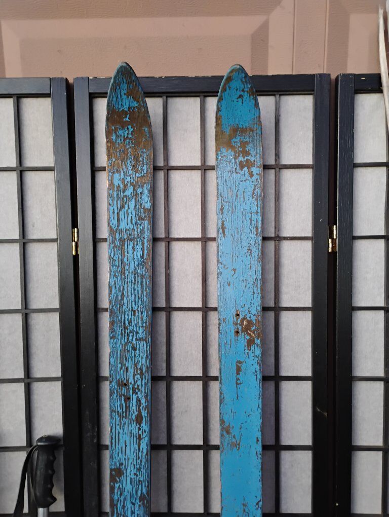 VenmoCool for display, beautiful Robin Egg Blue paint. part of the bindings and strap. Size 72L 3W. Added the aluminum poles because of the blue. about the same period. Nice rustic decor.