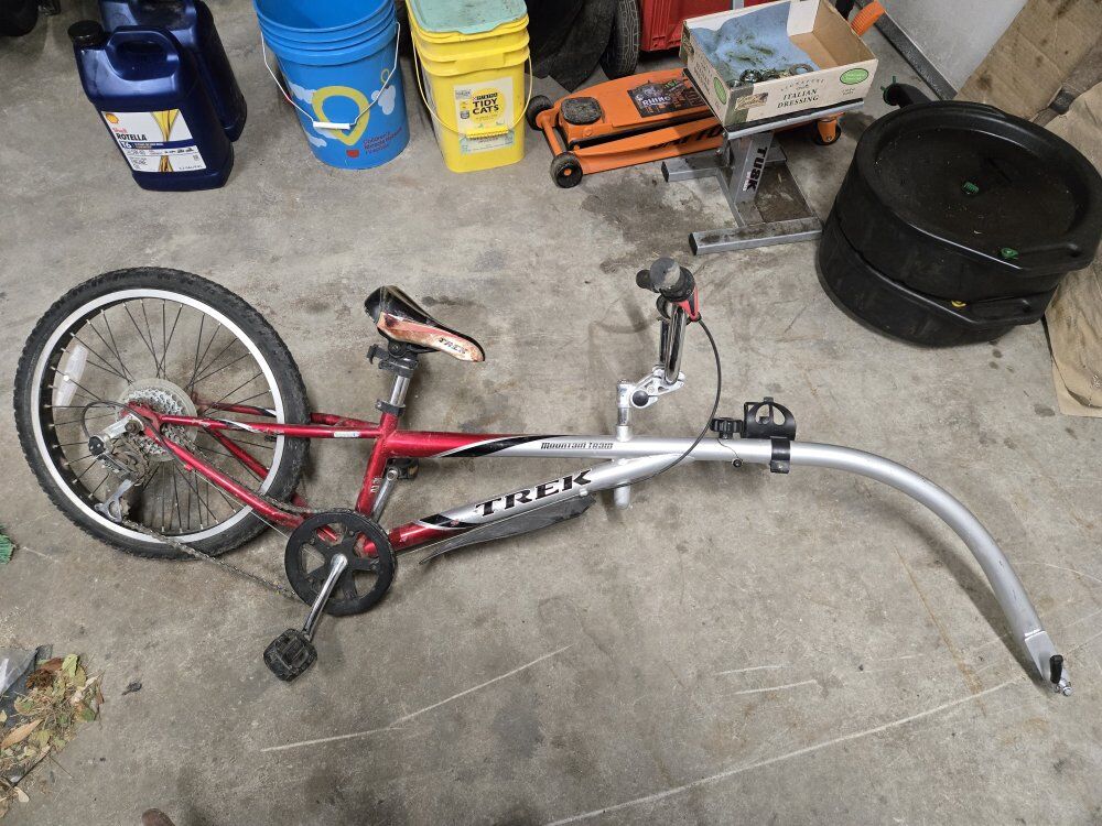 VenmoWe no longer have a use for our Trek tag a long type of bike. UT attaches to the seat post of a host bike and trails directly behind with a 5 speed twist shifter. my youngest kids have loved this option riding single track MTB trails with the family until they have become confident ridding it on their own. it is in fair condition. fully functional and priced accordingly.