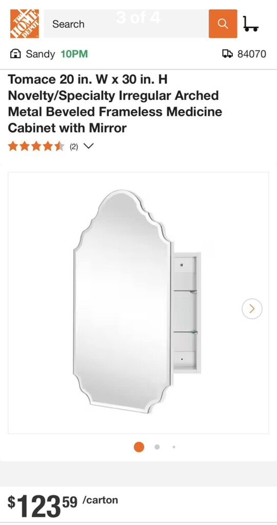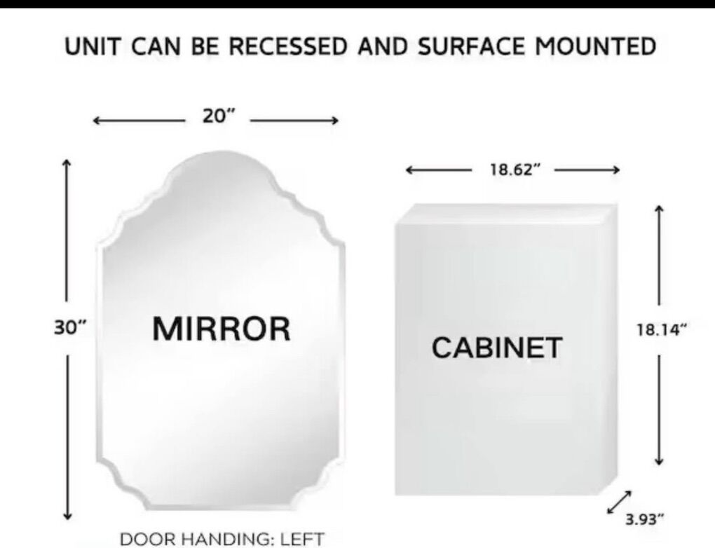 VenmoTomace 20 in. W x 30 in. H Novelty/Specialty Irregular Arched Metal Beveled Frameless Medicine Cabinet with Mirror New in box.