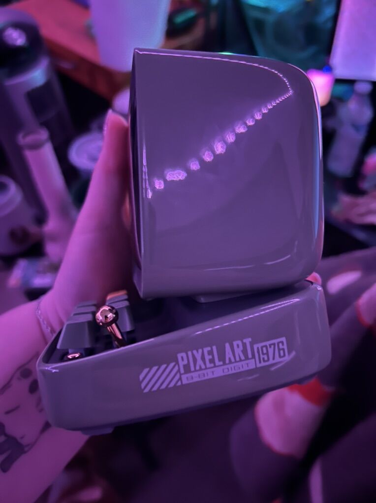 Only a month old. Still works perfectly. It doubles as a Bluetooth speaker and has an app you can use with it. Comes with charger. Cash only!