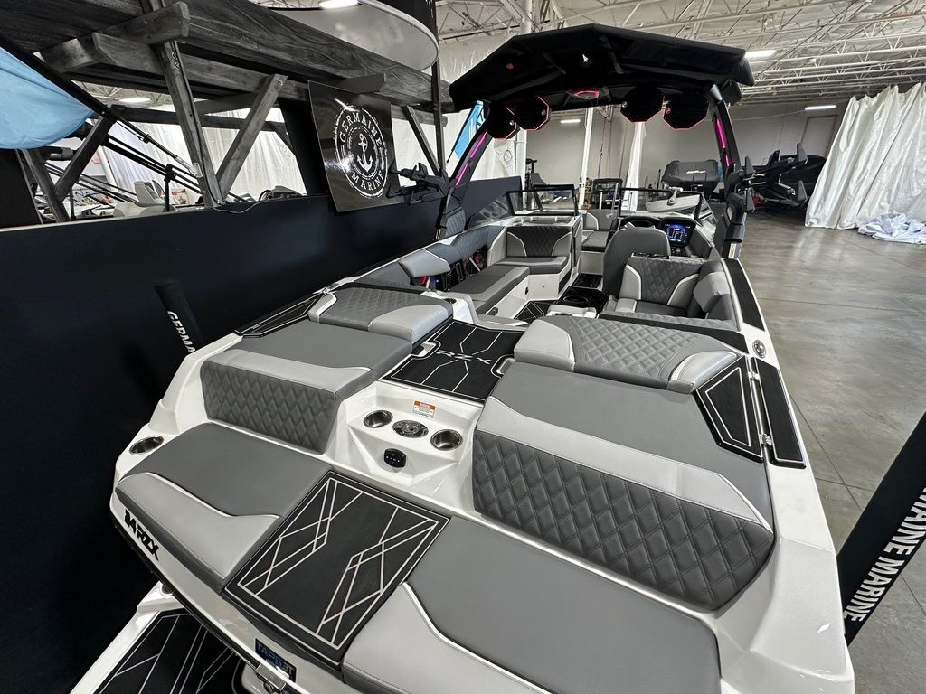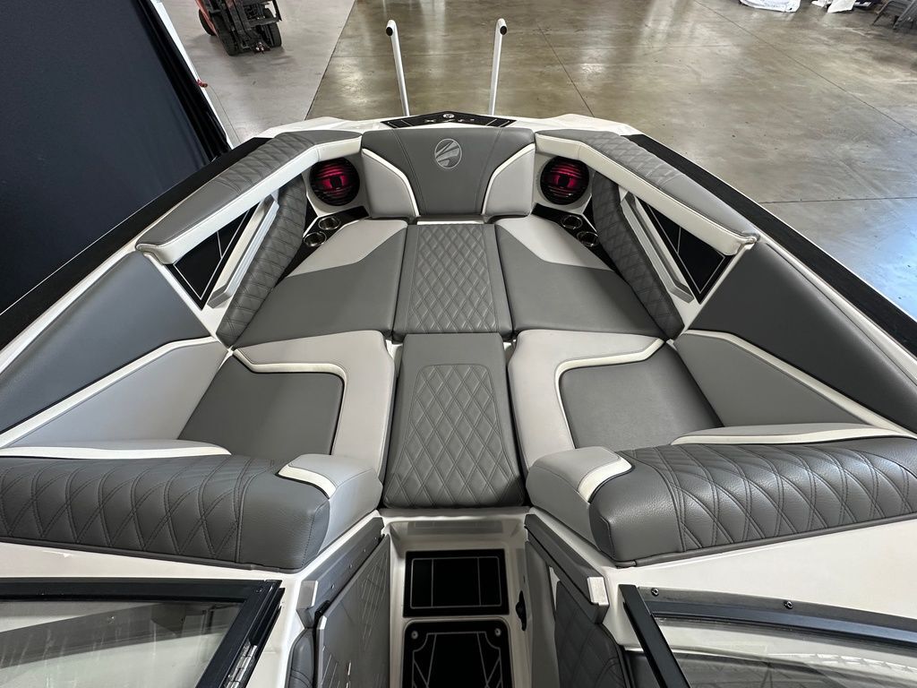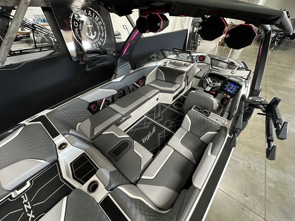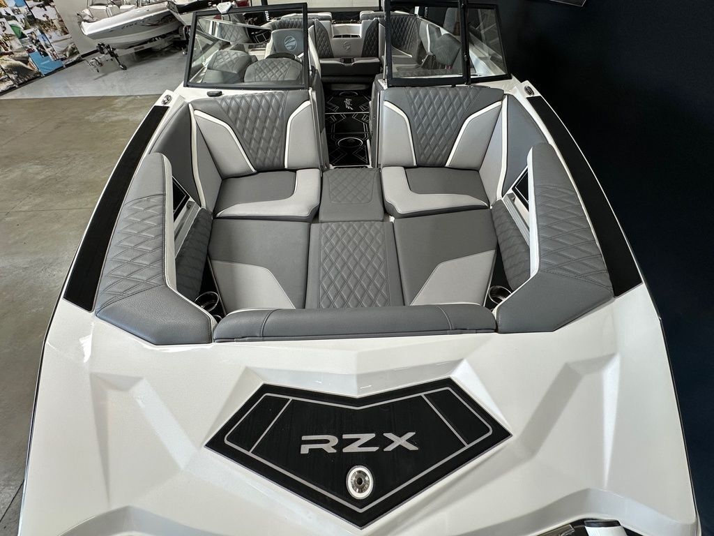 Expand your expectations with the 24RZX. Exuding confidence, its razor edge design is complemented by its distinct lines and lush double diamond stitching. With a culmination of our latest advancements, the 24RZX goes big, not just in size but in performance, surf waves, luxury, storage, and freeboard. If you crave power, state-of-the-art technology, and want to stand out - the 24RZX is the boat for you.